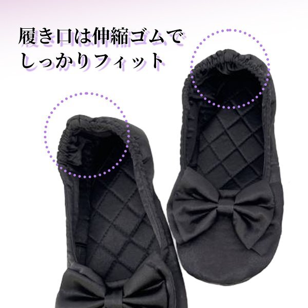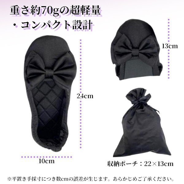 ☆携帯用 リボン付き 折りたたみ スリッパ 収納袋付き 【商品名】 携帯用 リボン付き 折りたたみ スリッパ 収納袋付き 【商品説明】 上品リボンとふかふかインソールで快適&おしゃれ。 旅行・学校行事・冠婚葬祭・オフィスでも大活躍! コンパクトに折りたたんで、専用ポーチにすっきり収納できます。 リボンデザイン&キルティング仕様で上品見え 足にやさしい柔らかインソールと滑りにくいソール 履き口は伸縮ゴムでしっかりフィット 洗濯機で洗えていつでも清潔に保てます 重さ約70gと超軽量設計 「他人のスリッパが苦手…」という方にもおすすめです! 【サイズ】 約22~24cm対応(36~38サイズ相当) 【素材】 ポリエステル・PU ※素材の臭いを感じる場合は、風通しの良い場所で、一週間程度陰干しして頂くと自然に軽減されます。 ( 収納袋付き携帯スリッパ リボン 収納ポーチ付き おしゃれ 黒 ブラック フォーマル 洗える キルティング 滑り止め 軽量 学校行事 卒業式 入学式 授業参観 冠婚葬祭 オフィス 室内履き スリッパ 持ち運び 携帯用 コンパクト 旅行 トラベルスリッパ 折りたたみスリッパ 女性用 室内シューズ 来客用 保護者会 説明会 PTA 会議 幼稚園 小学校 中学校 制服 行事) |