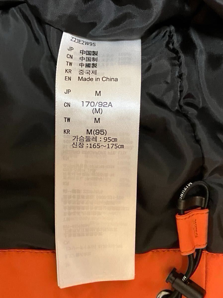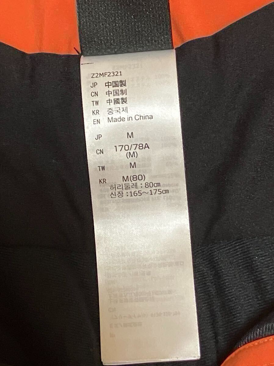 サイズは、ジャケットM(167㎝〜173㎝、胸囲89㎝〜91㎝)、パンツM(ウエスト75㎝〜81㎝)です。