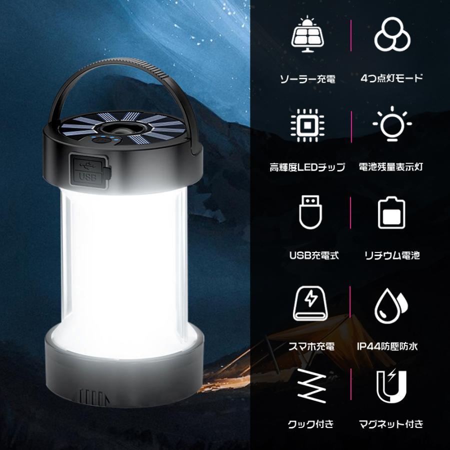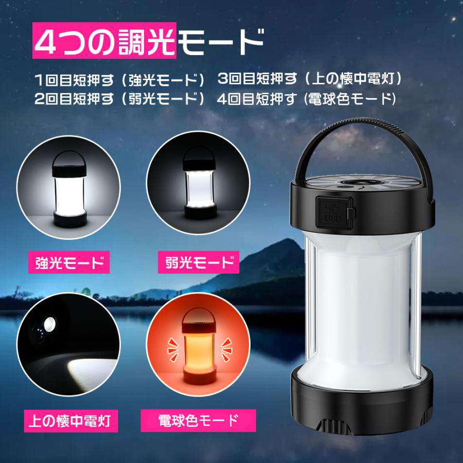 多機能 LEDランタン キャンプライト 懐中電灯 ソーラー充電式