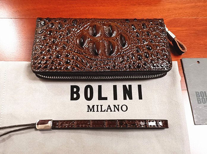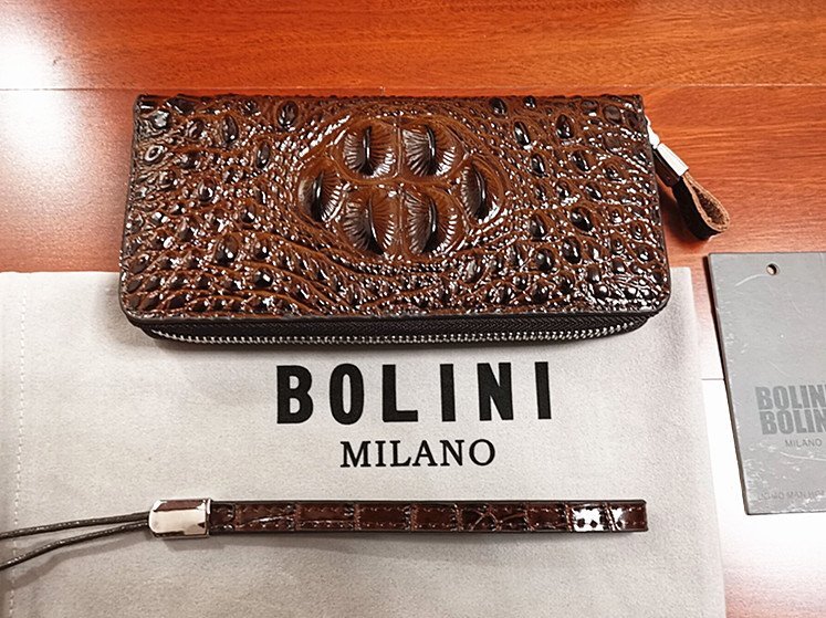 最高級逸品※イタリア製・ミラノ発*BOLINI・クロコダイル*ラウンドファスナー 長財布の出品です。 当店でもなかなか出てこない超希少で素晴らしい1品。本体には最上級牛革を使用し上品なクロコダイル型押し仕上げしております。内側にはスマホ・小物ポケットは勿論、カード入れもたっぷり付いてますので収納に大便利です。革ライクな表情を持ちながら、長く愛用できる一品。多くのファンから支持されている傑作です。