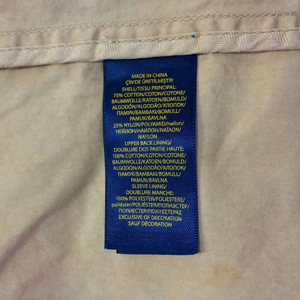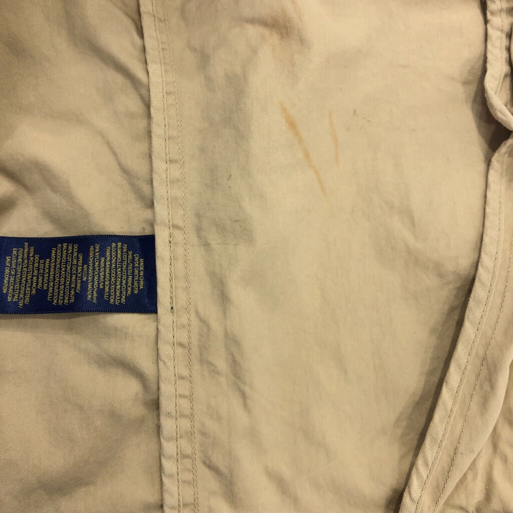| 【商品管理番号】 U9754 【ブランド】 Polo by Ralph Lauren/ポロ ラルフローレン 【サイズ】 XXL 【実寸サイズ】 肩幅:約56cm 着丈:約67cm 身幅:約66cm 袖丈:約64cm 【主な素材】 表地 : コットン 【色】 ベージュ 【仕様】 大きいサイズ ハリントンジャケット 【状態】 汚れ:袖、背中、腹部裏地 特記事項:変色 | |||