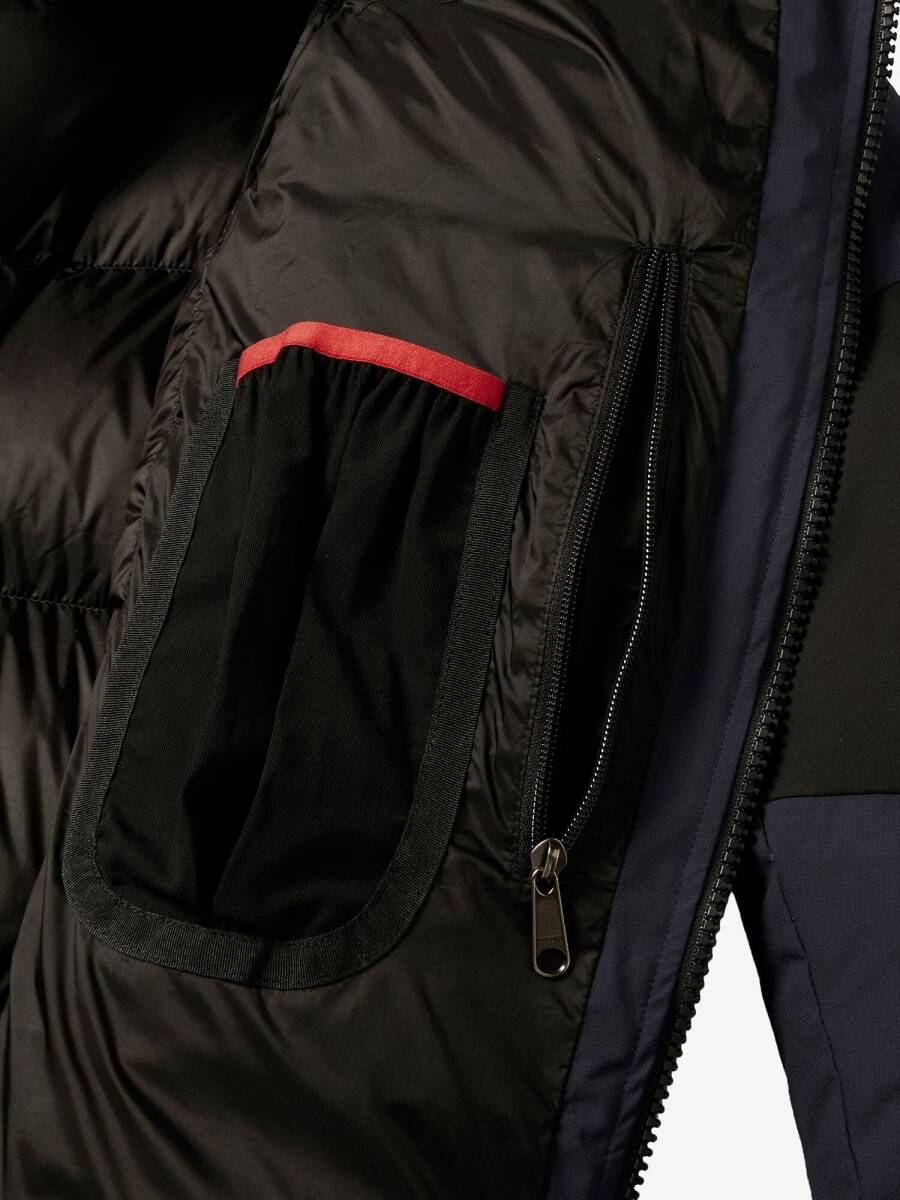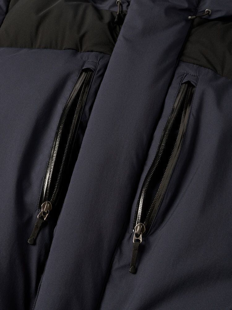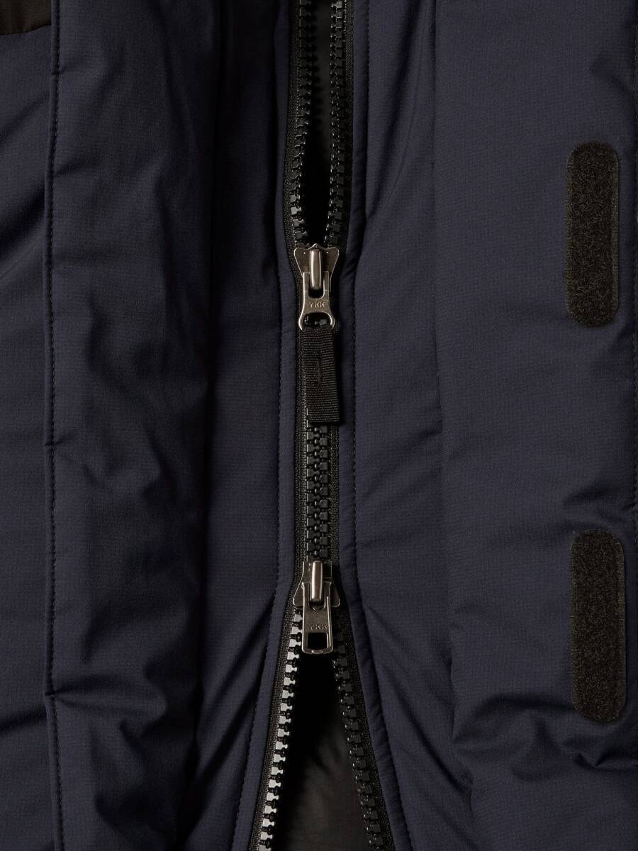 中わた入りの内襟やフロントのダブルフラップなどでコールドスポットを軽減。