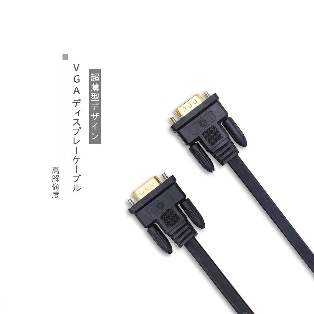 D-Sub15ピン(ミニ)入力端子を装備したパソコンと、D-Sub15ピン(ミニ)入力端子を装備したディスプレイを接続するケーブルです<br> <br> <b>対応機種</b><br> D-sub15ピン(ミニ)の入力端子を持つPC、ディスプレイ及びプロジェクター等<br> <br> <b>特徴</b><br> 超薄型フラットデザイン、こんな柔らかいケーブルはスペースに余裕がない所や畳の下で設置するのに最適です、収納時や移動時取り回しがラクラク。<br> <br> <b>便利さ</b><br> ケーブル長は10m、広い会議室での発表会、イベントなどでパソコンとプロジェクターの距離が遠い場合に便利です<br> <br> <b>金メッキピン</b><br> サビなどに強く信号劣化を抑える金メッキピンを採用しています。<br> <br> <b>商品の情報</b><br> 対応機種:D-Sub15ピン(ミニ)の入力端子を持つパソコン、ディスプレイ、プロジェクターなど<br> コネクタ形状:D-Sub15ピン(ミニ)オス-D-Sub15ピン(ミニ)オス<br> ケーブルタイプ:超薄型フラットデザイン<br> ケーブル長:10m ケーブル太さ:約10mm<br> 最高対応解像度:1920x1080(1080p)