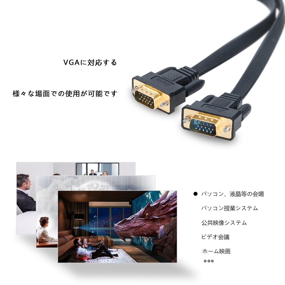 DTECH ディスプレーケーブル VGAケーブル 10m D-Sub 15pin オス-D-Sub 15pin オス 超薄型フラットデザイン ブラック