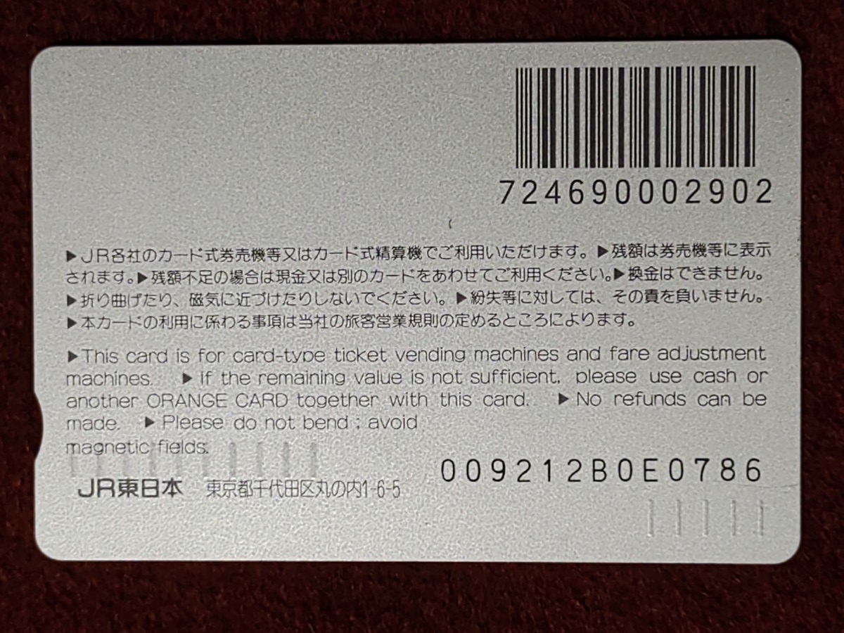 ごく稀に磁気不良の場合があります。その場合は申し訳ありませんがJR各社・主な駅のみどりの窓口まで持ち込んでいただき、返金処理をお受け願います(国鉄・JR他社のカードも返金してくれます。少々日数がかかります)。