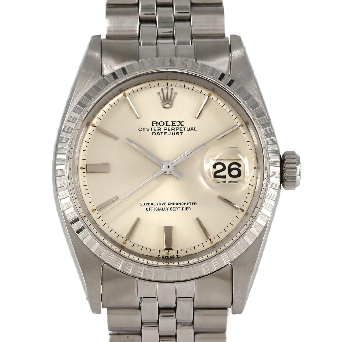 1960年代から1970年代後半頃まで製造された、ヴィンテージ デイトジャスト「Ref. 1603」です。ステンレススチール製のケースに、フルーテッドベゼルとは異なる細かい刻みが特徴の「エンジンターンドベゼル」を組み合わせています。文字盤は、最もスタンダードで飽きのこないシルバーカラーを採用。ブレスレットには、しなやかな着け心地が魅力の5連ジュビリーブレスレットが装着されています。ムーブメントには、高い耐久性と精度を誇るクロノメーター認定の自動巻きキャリバー「1570」を搭載。時代を超えて愛される普遍的なデザインと、ヴィンテージならではの味わい深さを併せ持つ、アンティークロレックスの入門機としても最適な一本です。