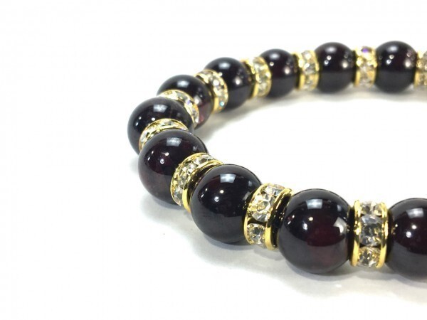 こちらは、10mm玉のガーネットを使用したパワーストーンブレスレットです。間にはロンデルを挟み高級感あるブレスレットに仕上げています。石大きさは腕にも馴染みやすいように10mm玉を使用して、サイズは内径約18cmです。(サイズ調節も無料で承っています。サイズ変更の場合は落札後、取引ナビにてご一報くださいませ。) 数に限りがございますので気になる方はお早めにどうぞ。