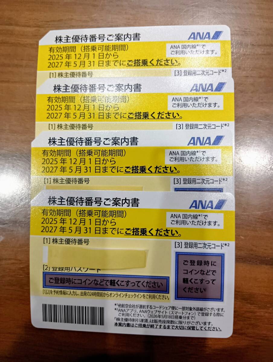 2025年度下期分 有効期間(搭乗可能期間)2025年12月1日~2027年5月31日 4枚/1セット