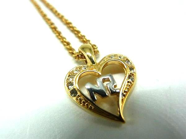 ■美品■ NINA RICCI ニナリッチ ハート ラインストーン ネックレス ペンダント アクセサリー レディース ゴールド系 DK4613