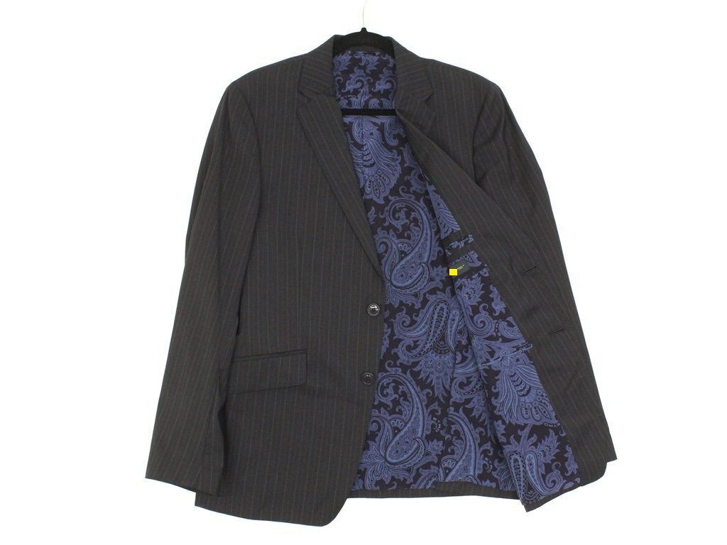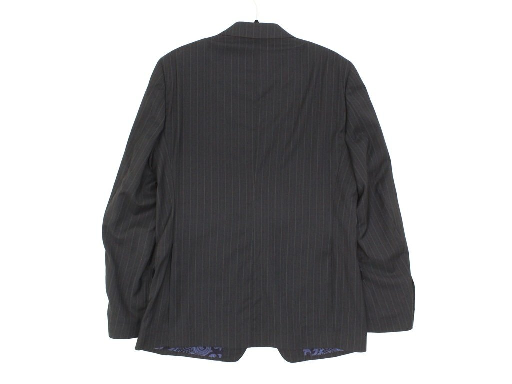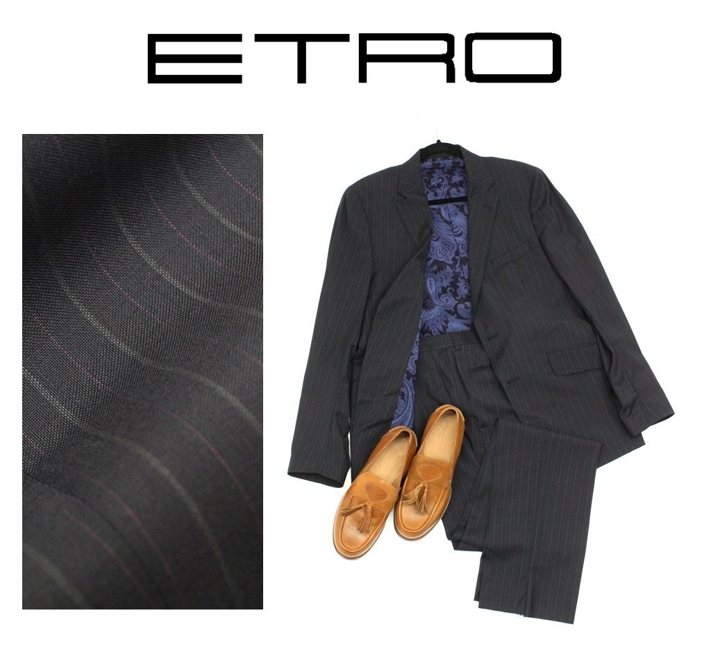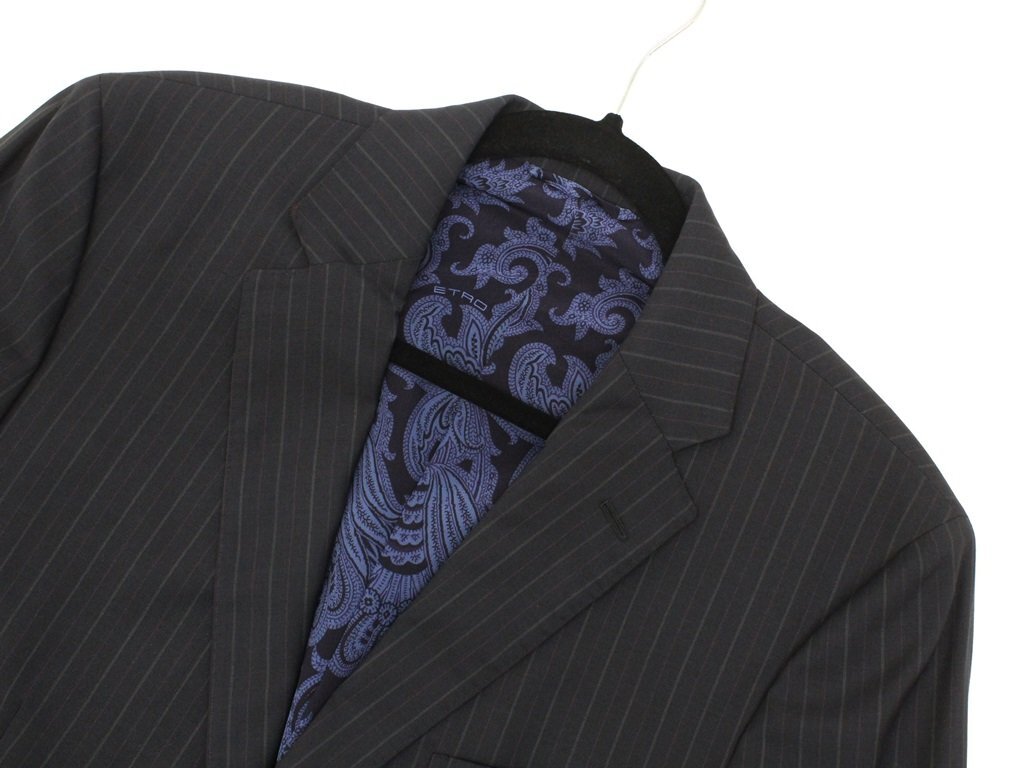 32万新品◆52=L◆エトロ◆ウールストライプスーツペイズリー柄裏地ダークグレー濃灰【ETRO】