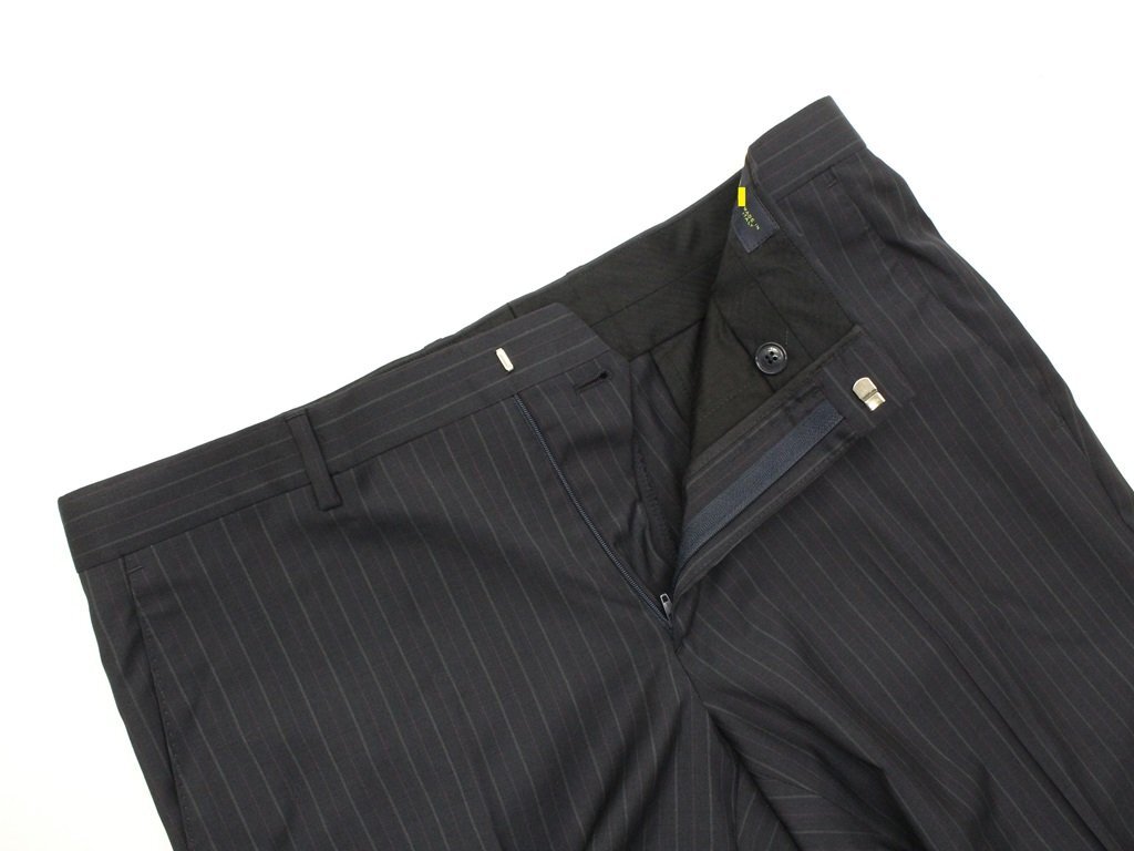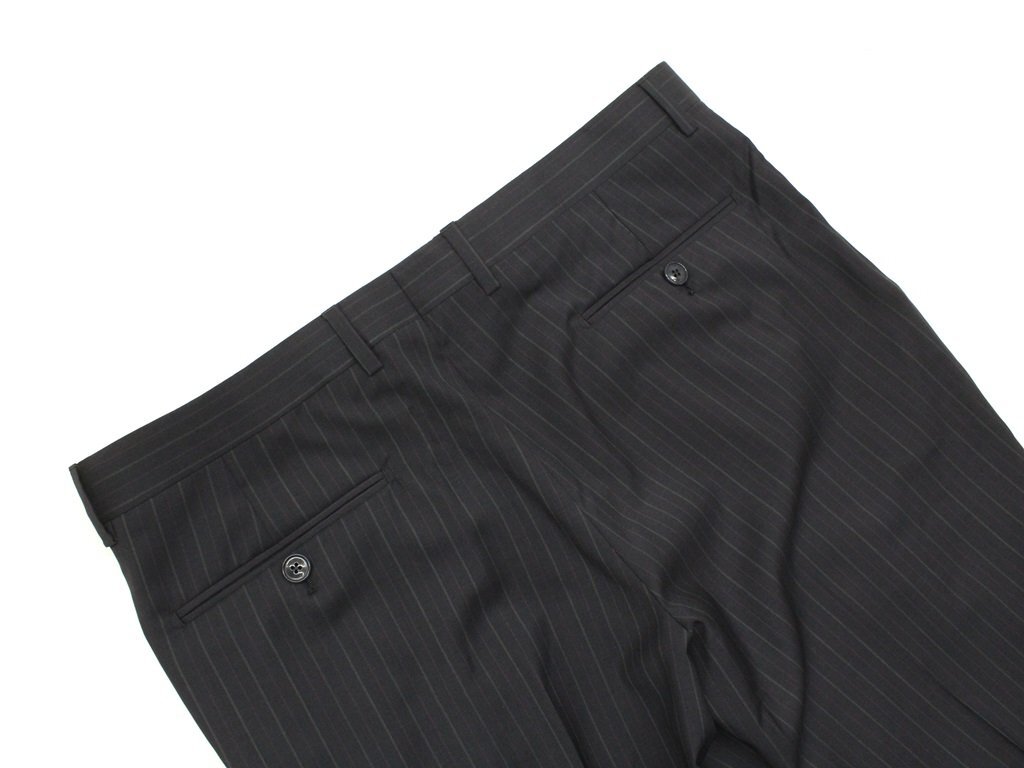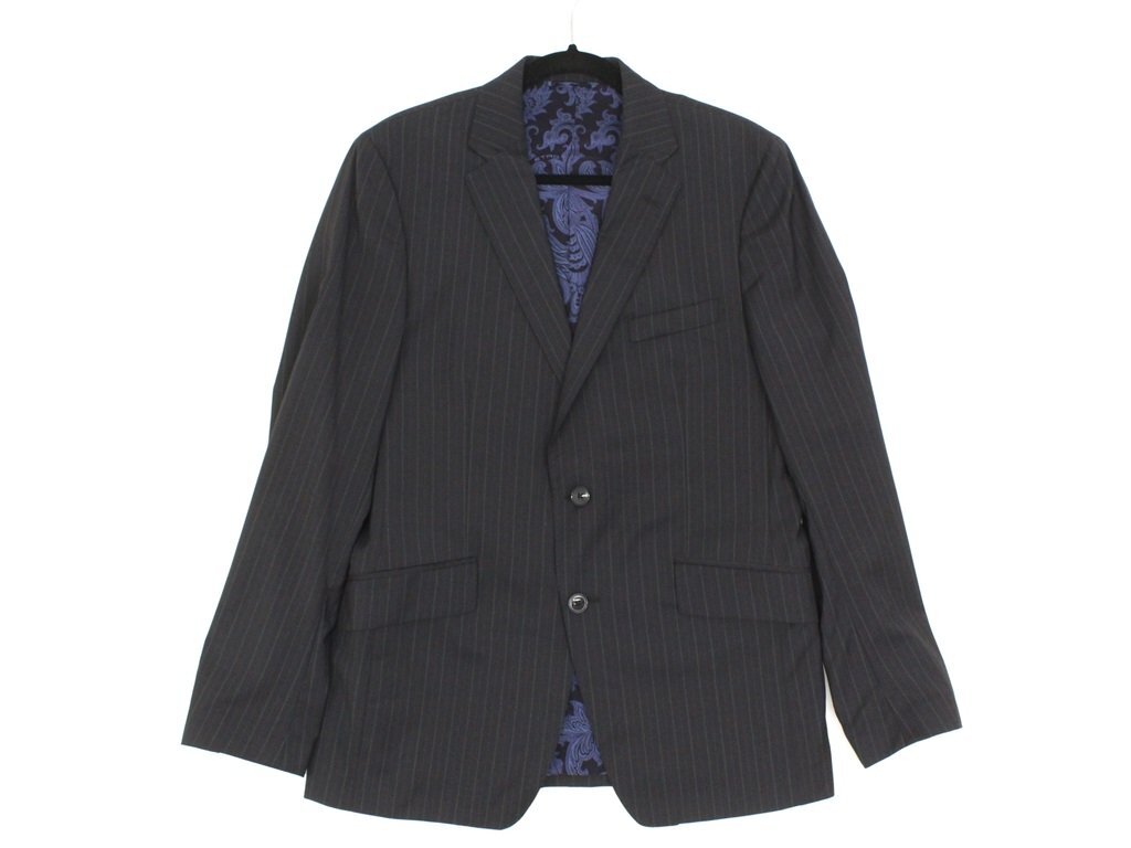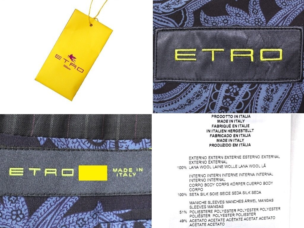 32万新品◆52=L◆エトロ◆ウールストライプスーツペイズリー柄裏地ダークグレー濃灰【ETRO】