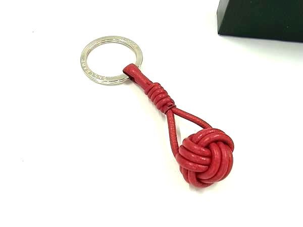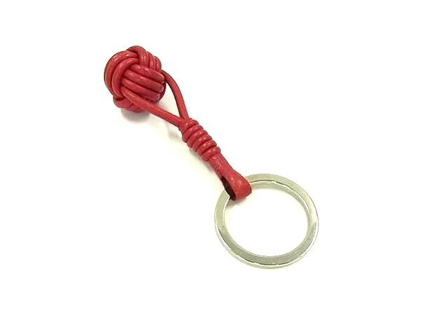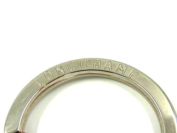■美品■ LONGCHAMP ロンシャン レザー キーホルダー キーリング バッグチャーム アクセサリー レッド系×シルバー系 DK2535
