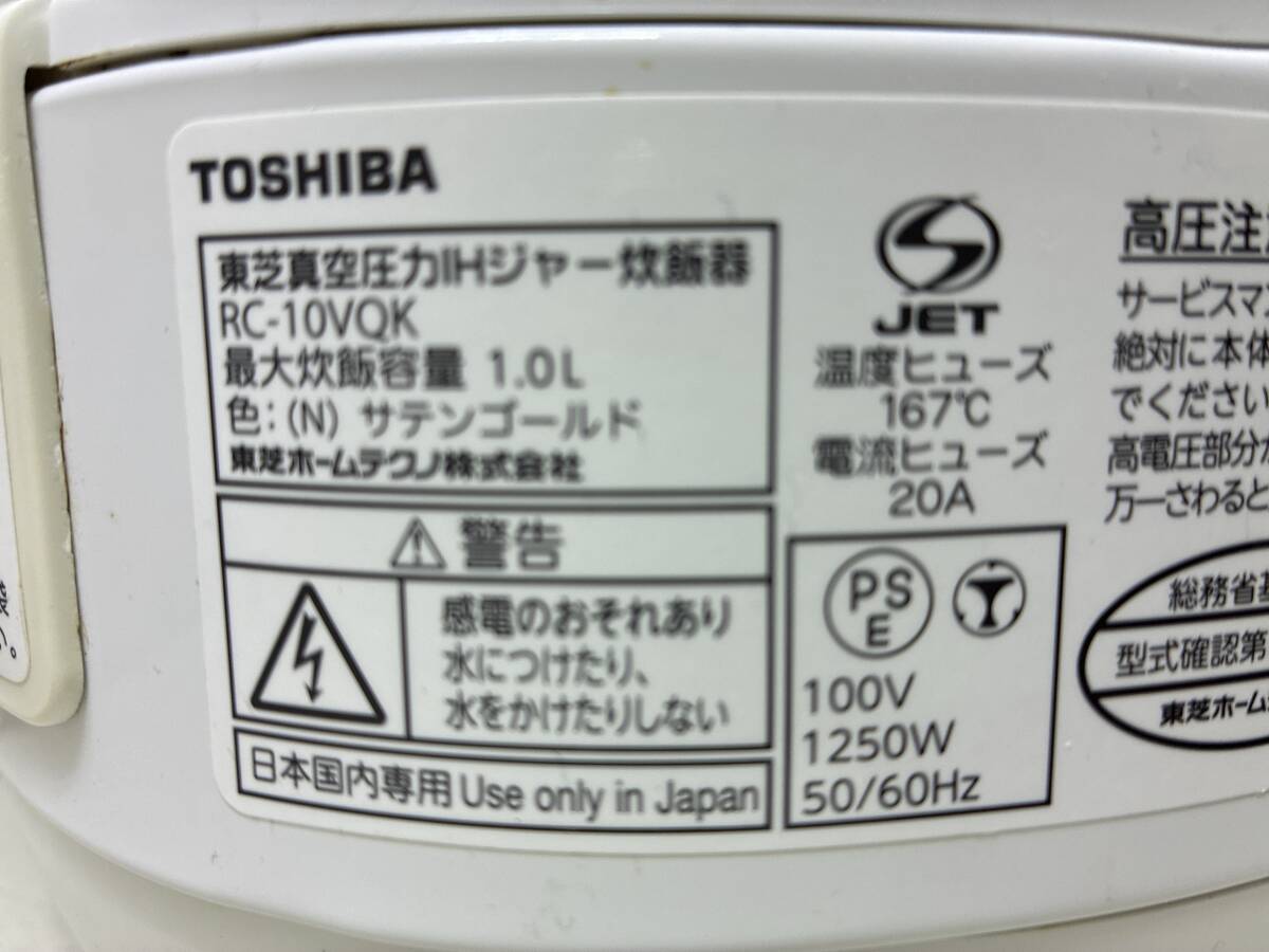 (オ504)RC-10VQK-N TOSHIBA 東芝真空圧力IHジャー炊飯器(5.5合炊き)2016年製 通電確認済み 中古品