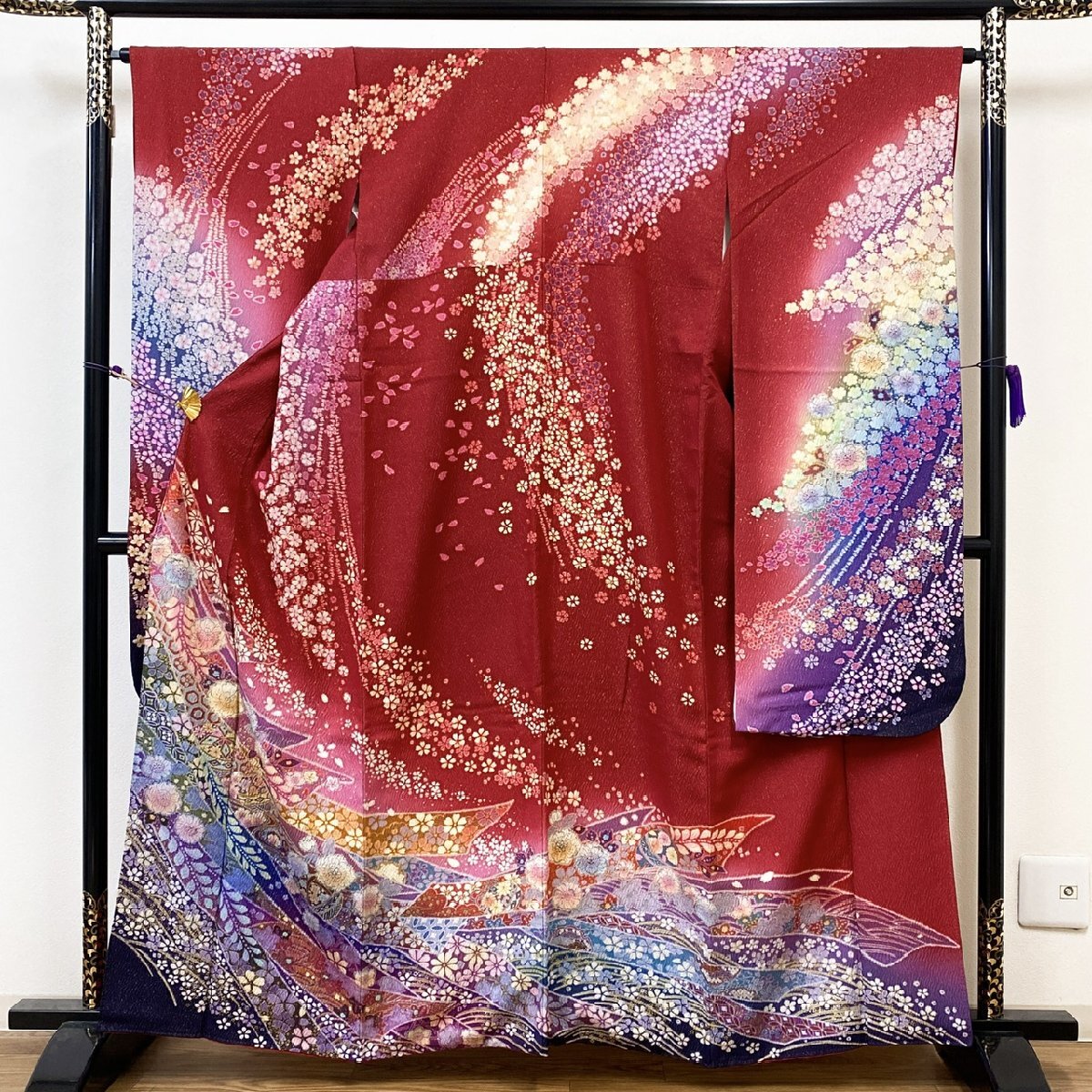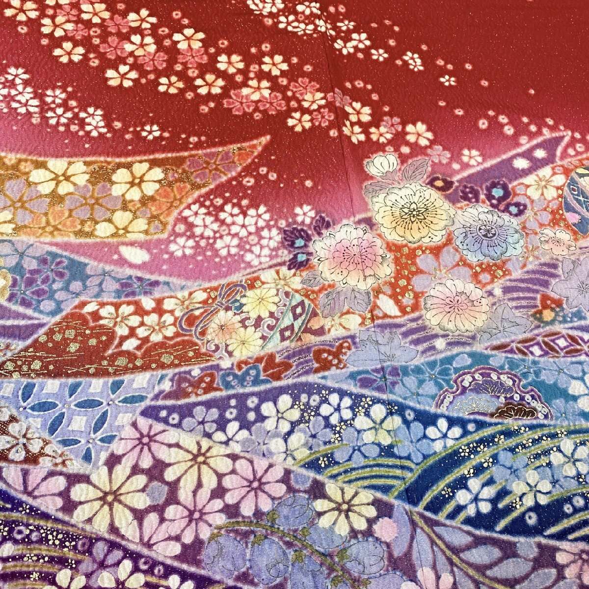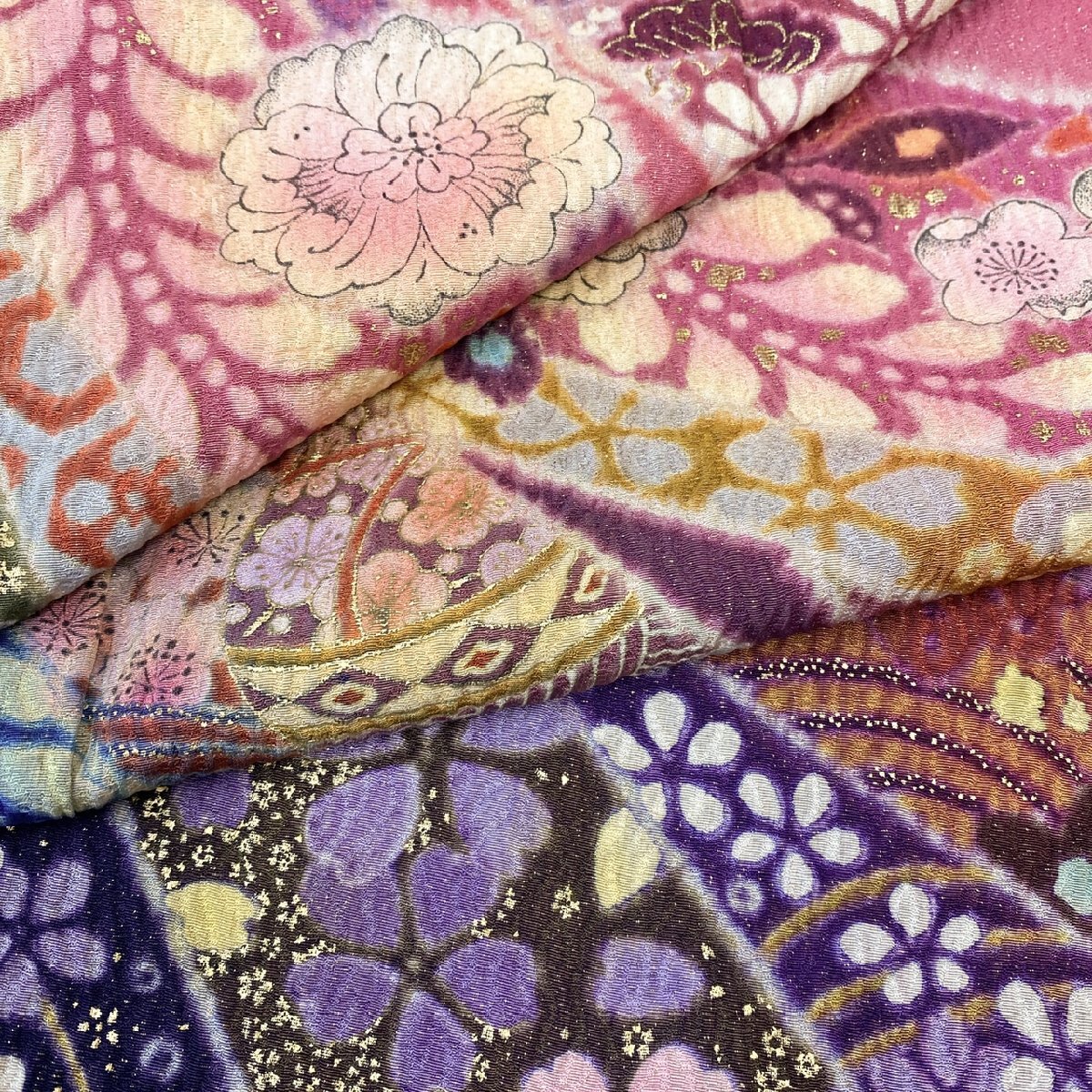 着物月花 金通し 可憐な花 振袖 正絹 金糸 ki6654