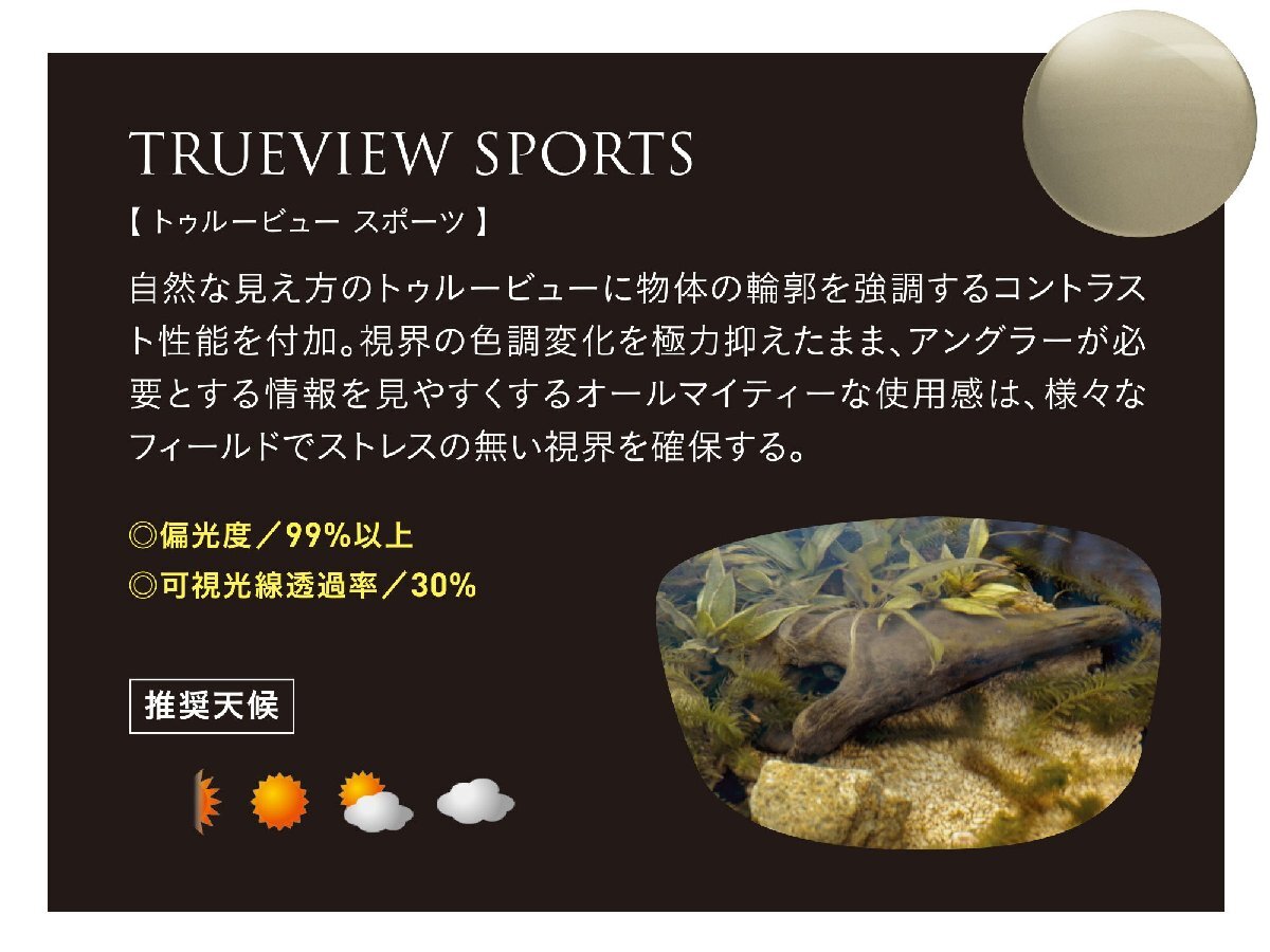 レンズカラー:トゥルービュースポーツ(偏光度99%以上/可視光線透過率30%)