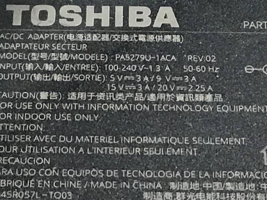 TOSHIBA 型式色々 ACアダプタ 20V 2.25A 計10個セット Type-C■一部保証品