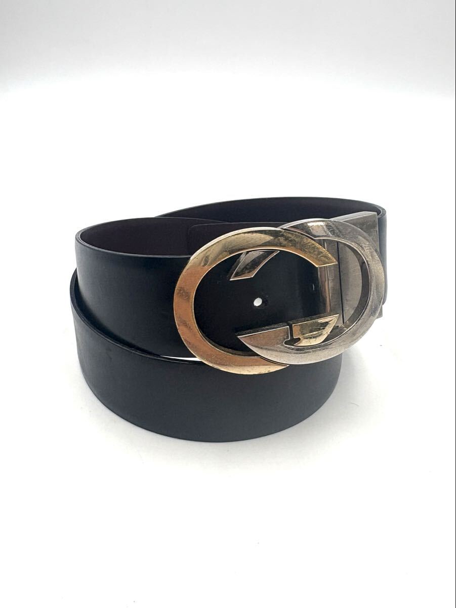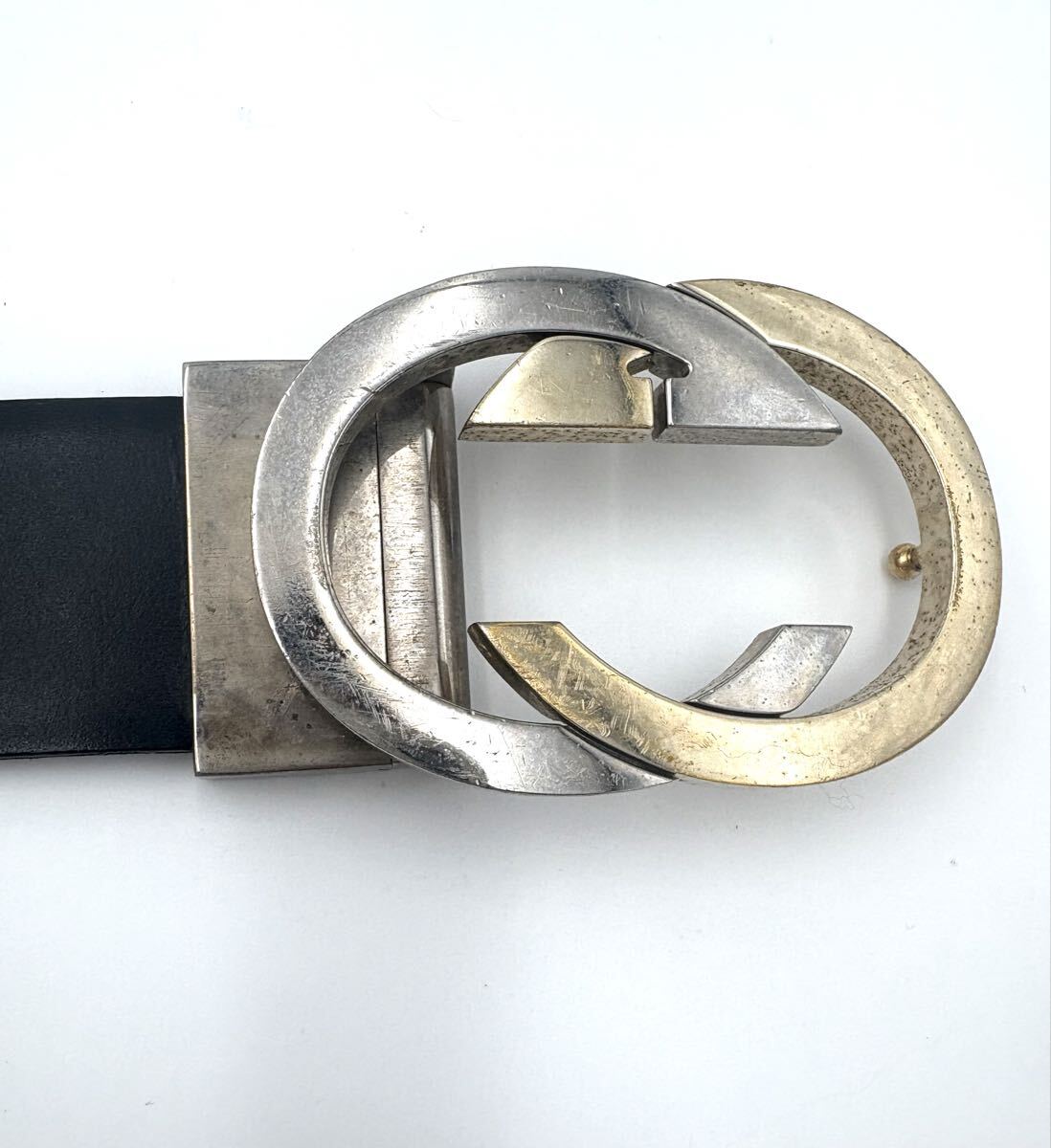 商品名 : GUCCI グッチ インターロッキングG ブラック 黒 シルバー金具 レザー メンズ ベルト