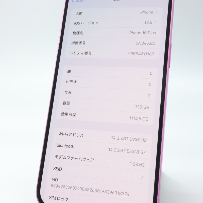 ■機種 : iPhone16 Plus 128GB ピンク A3289 3N345J/A