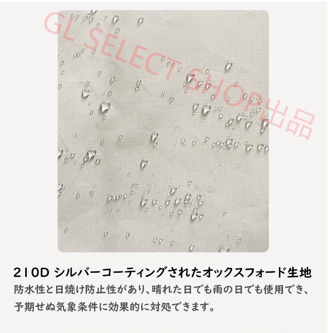 ★210Dオックスフォード生地で作られており、耐摩耗性、耐引裂性、撥水性、日焼け防止性があり、晴れの日でも雨の日でも使用でき、予期せぬ気象条件にも効果的に対処できます。
