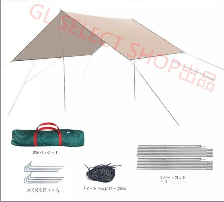 (A39)タープテント 天幕シェード テント 撥水 日焼け防止 UVカット 紫外線対策 サンシェルター 収納バッグ付き キャンプ アウトドア 2~4人