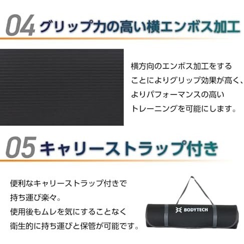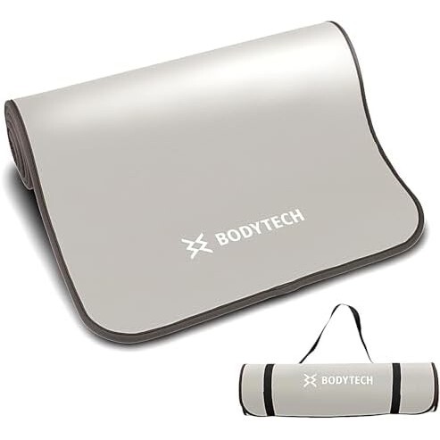 グレー/アースブラウン 【限定】 ボディテック ヨガマット 10mm 厚め 幅広 大きめ エッジガードマット トレーニングマット ストレッチマット ピラティスマット 筋トレ エクササイズ キャリーバンド付き