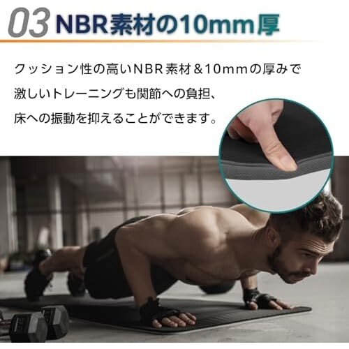【高いクッション性】NBR素材の10mm厚クッション性の高いNBR素材&10mmの厚みで床への振動を抑えることができます。