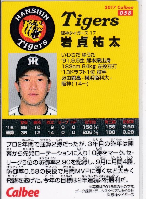 ●2017カルビー 【岩貞 祐太】 BASEBALL CARD Bo.058:阪神