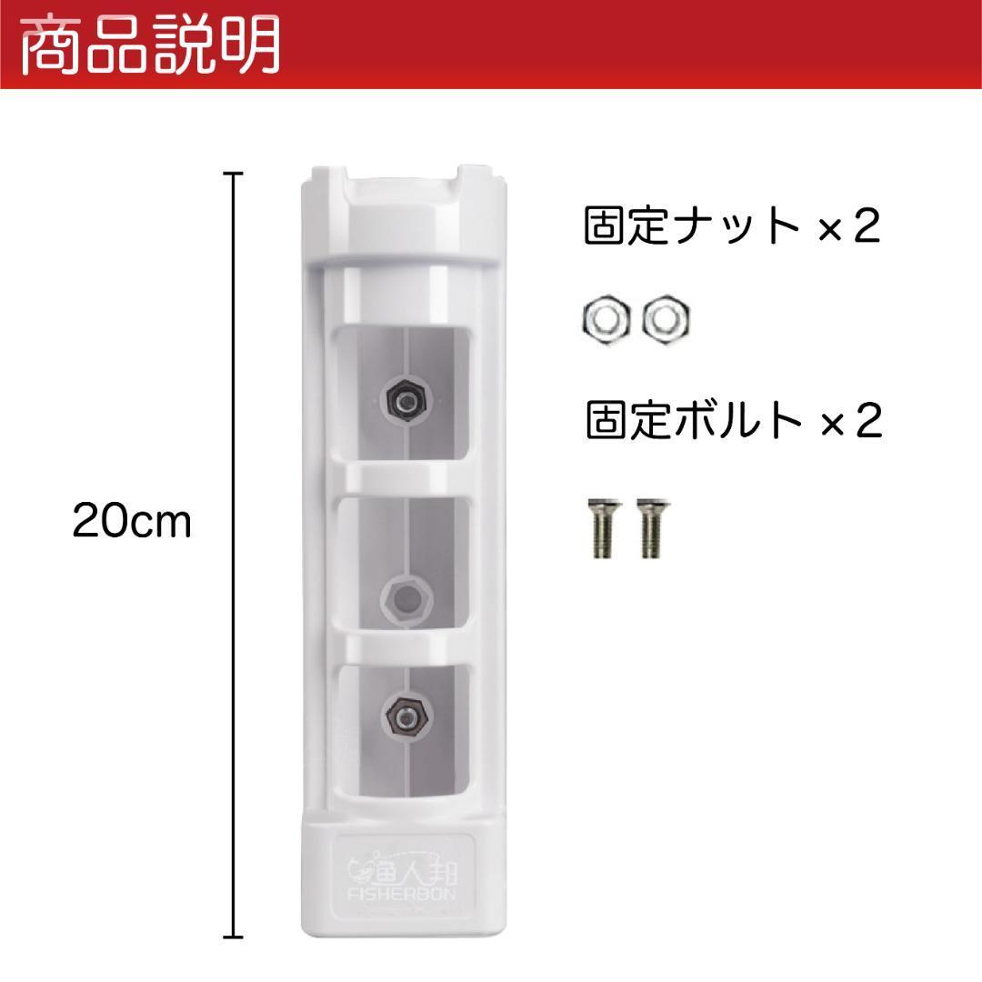 こちらはクーラーボックス・タックルボックス用のロッドホルダーになります。固定ボルト・固定ナットが付属されていますので取り付けたい箇所へすぐに取り付けできます。