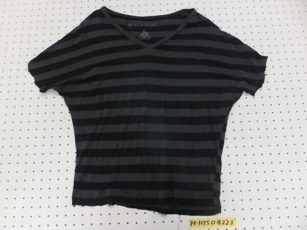 BLACK PUPIL ナノユニバース取扱 レディース USA製 ボーダー コットンレーヨン ドルマンカットソー S 黒チャコールグレー です。
