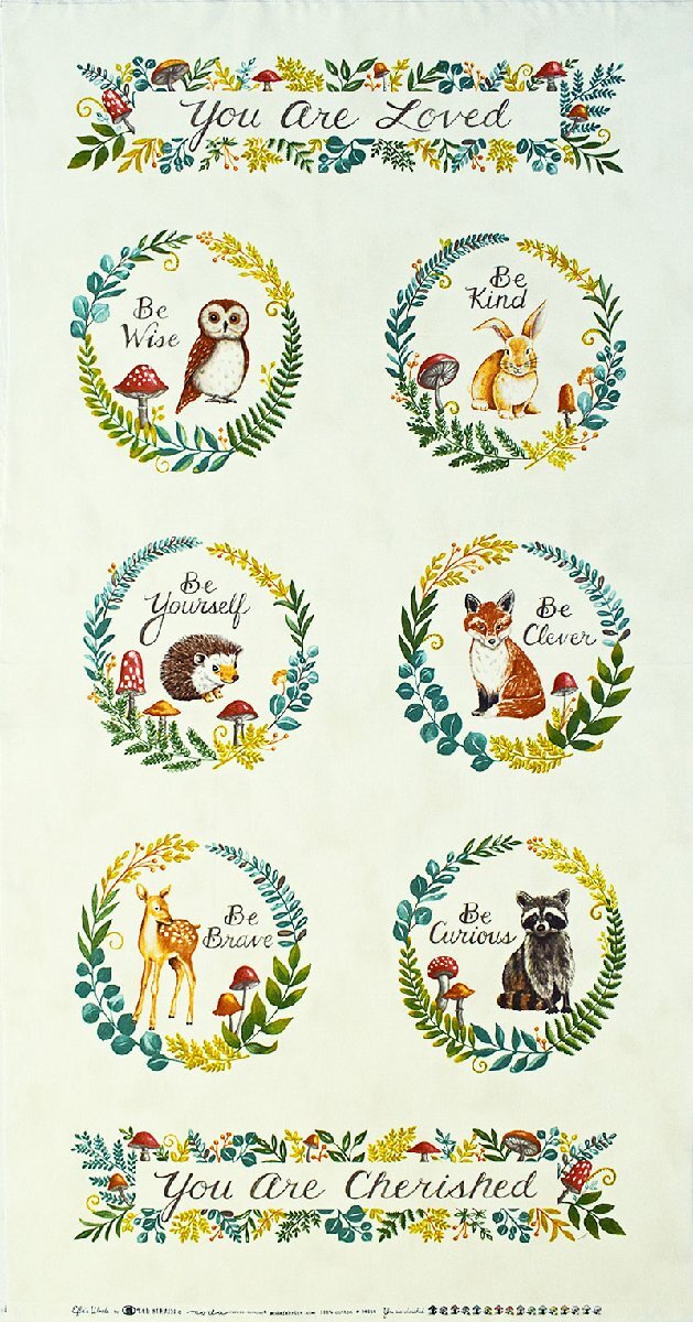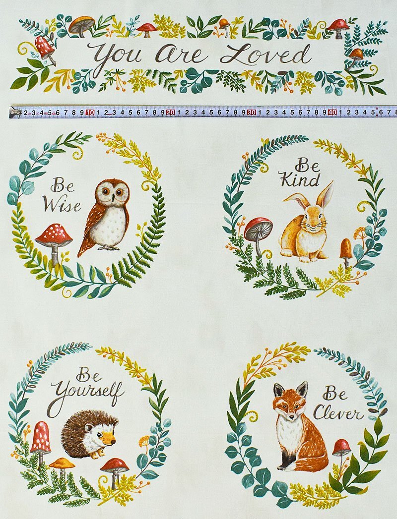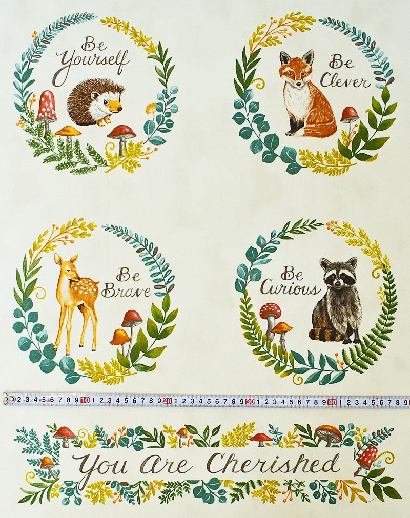 フクロウには"Be Wise"、ウサギには"Be Kind"、ハリネズミには"Be Yourself"、キツネには"Be Clever"、鹿には"Be Brave"、アライグマには"Be Curious"と、その動物にふさわしい言葉が添えられています。