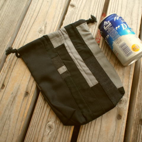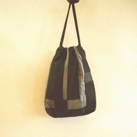 【入学、入園!】450円黒とグレーパッチワーク巾着袋 【手作り小物】