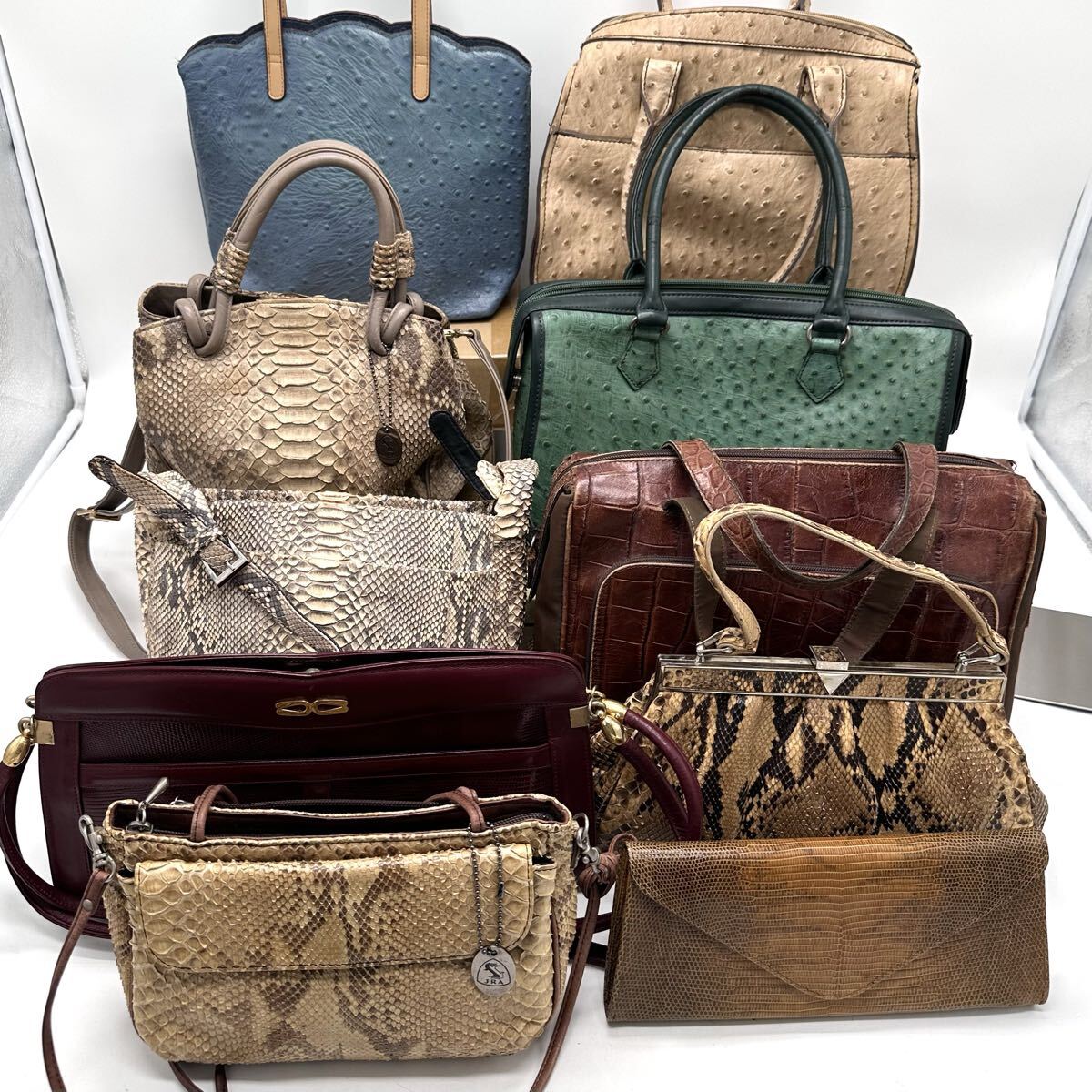 こちらはエキゾチックレザーバッグのまとめ売りです。