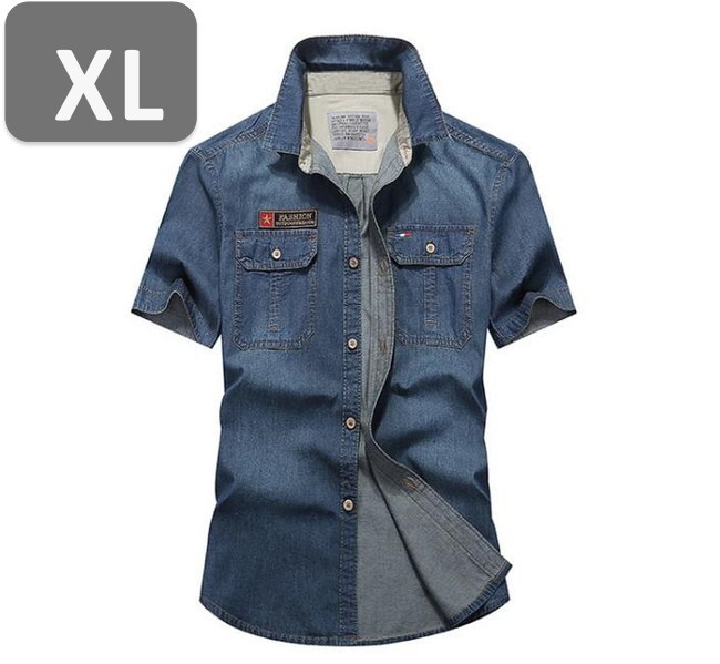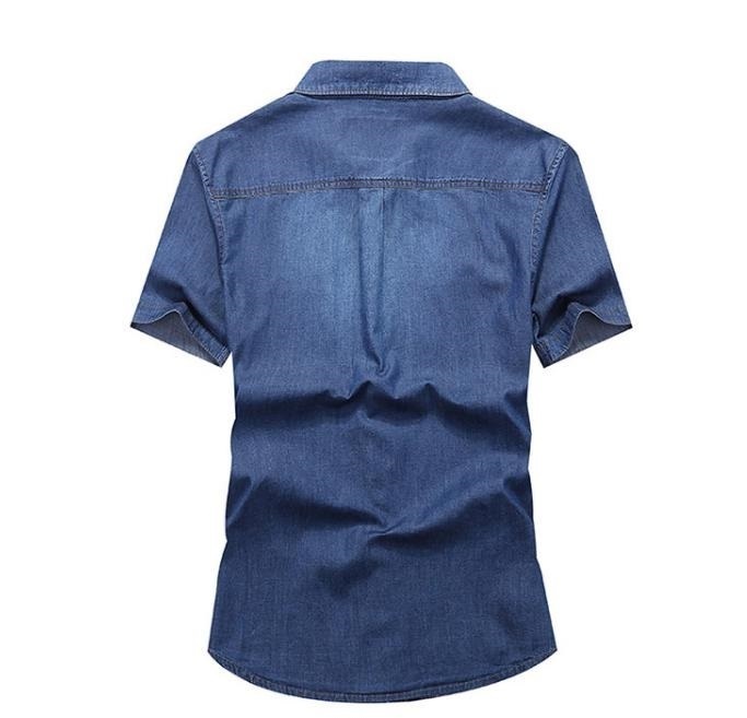 メンズ 半袖 デニム シャツ ブルー XL 半袖 デニム シャツ 春秋【n190】