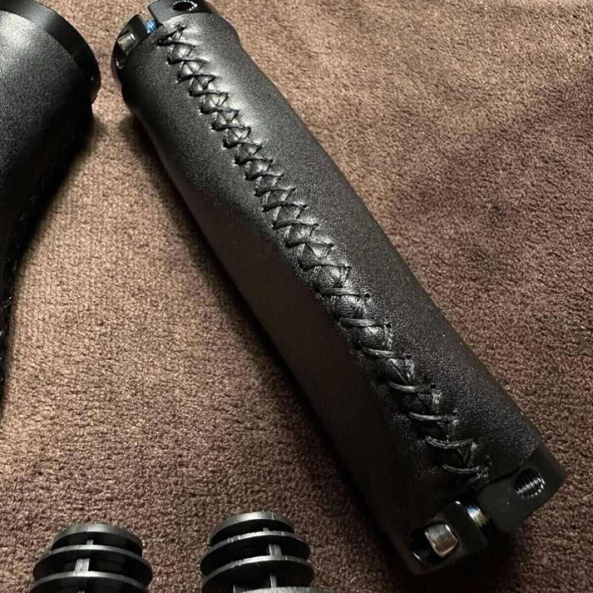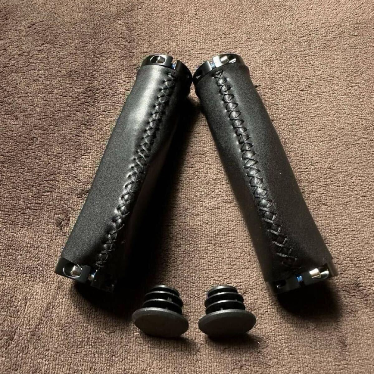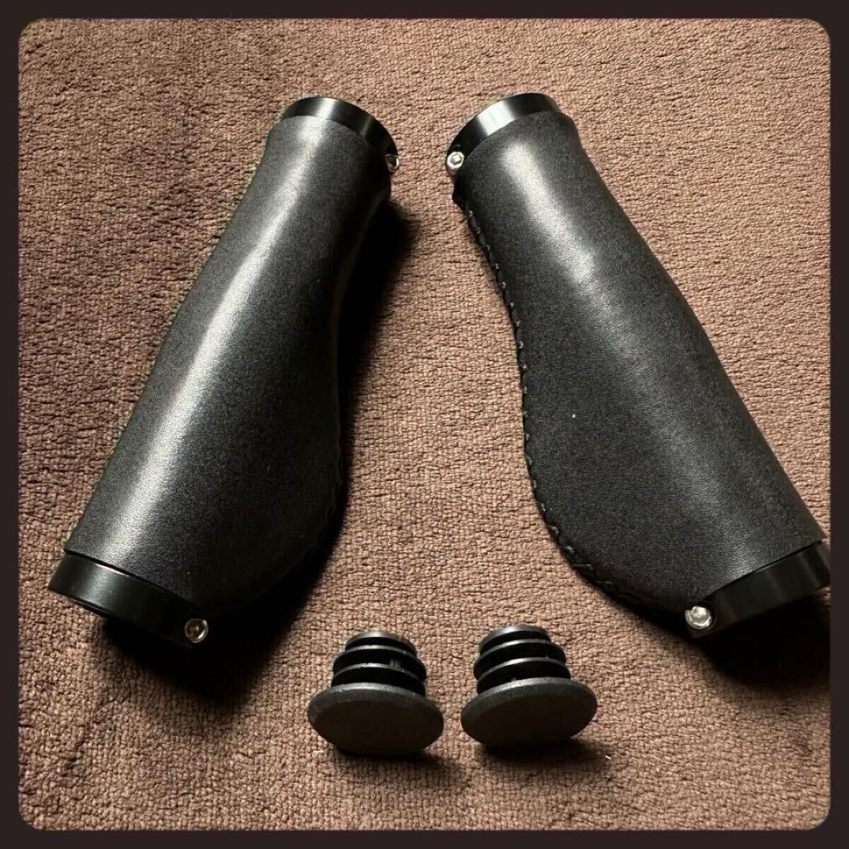 ブラック 黒 ハンドルバー グリップ 自転車 MTB マウンテンバイク クロスバイク エルゴグリップ レザー調