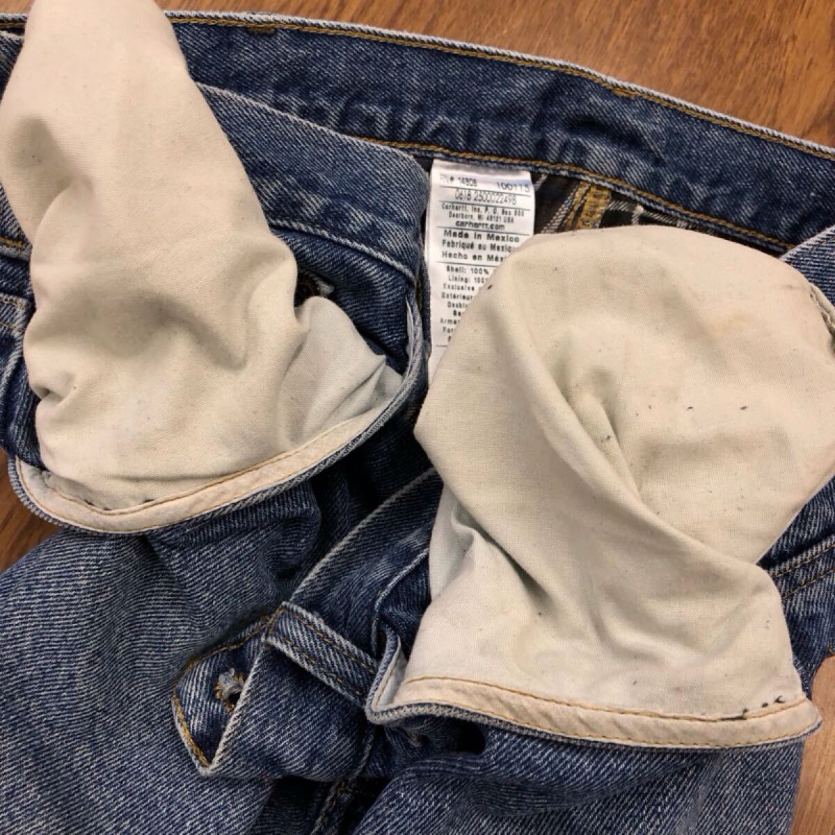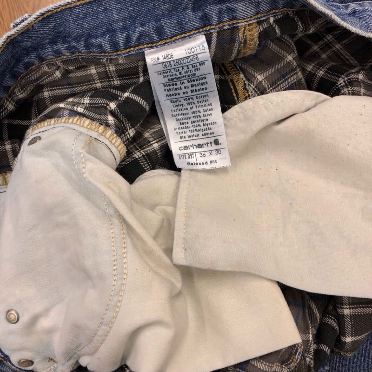 【GK228】Carhartt W36 L30 デニムウォームパンツ 裏地チェック柄 メンズブランド古着 カーハート 送料無料