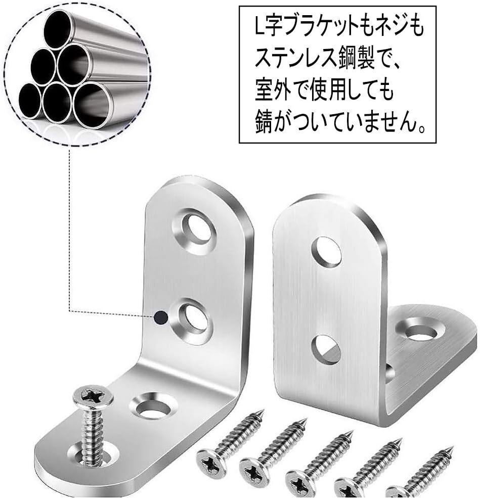 • 【材質】L字ブラケットもネジもステンレス鋼製で、(塗料ではない)室外で使用しても錆がついていません。内側にはプラスチックフィルム(使用時に引き裂く)があり、表面にはめっき処理がなく、バリがあるので、指を傷つけないように注意して使用してください。