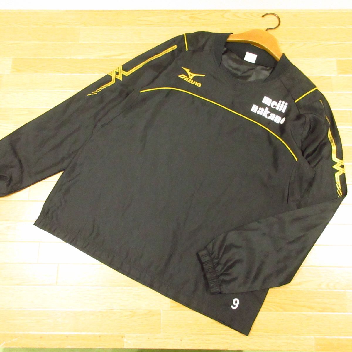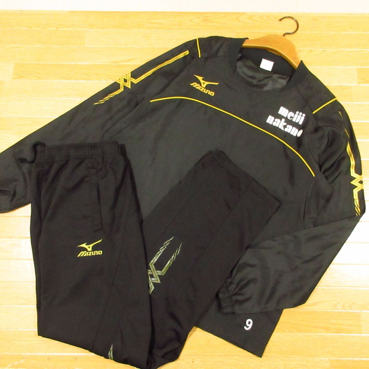 ◎使用少!明治大学中野 MIZUNO ミズノ L 上下セット ピステジャケット&ジャージパンツ ユニフォーム メンズ 黒x金◆BA3944