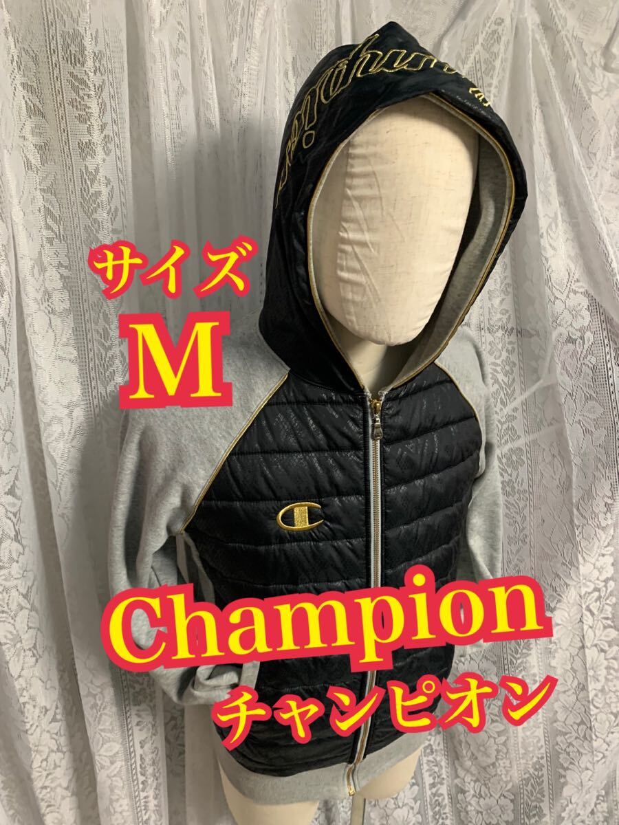 Champion チャンピオン フードジャケット スウェット 中綿 刺繍ロゴ Mサイズ