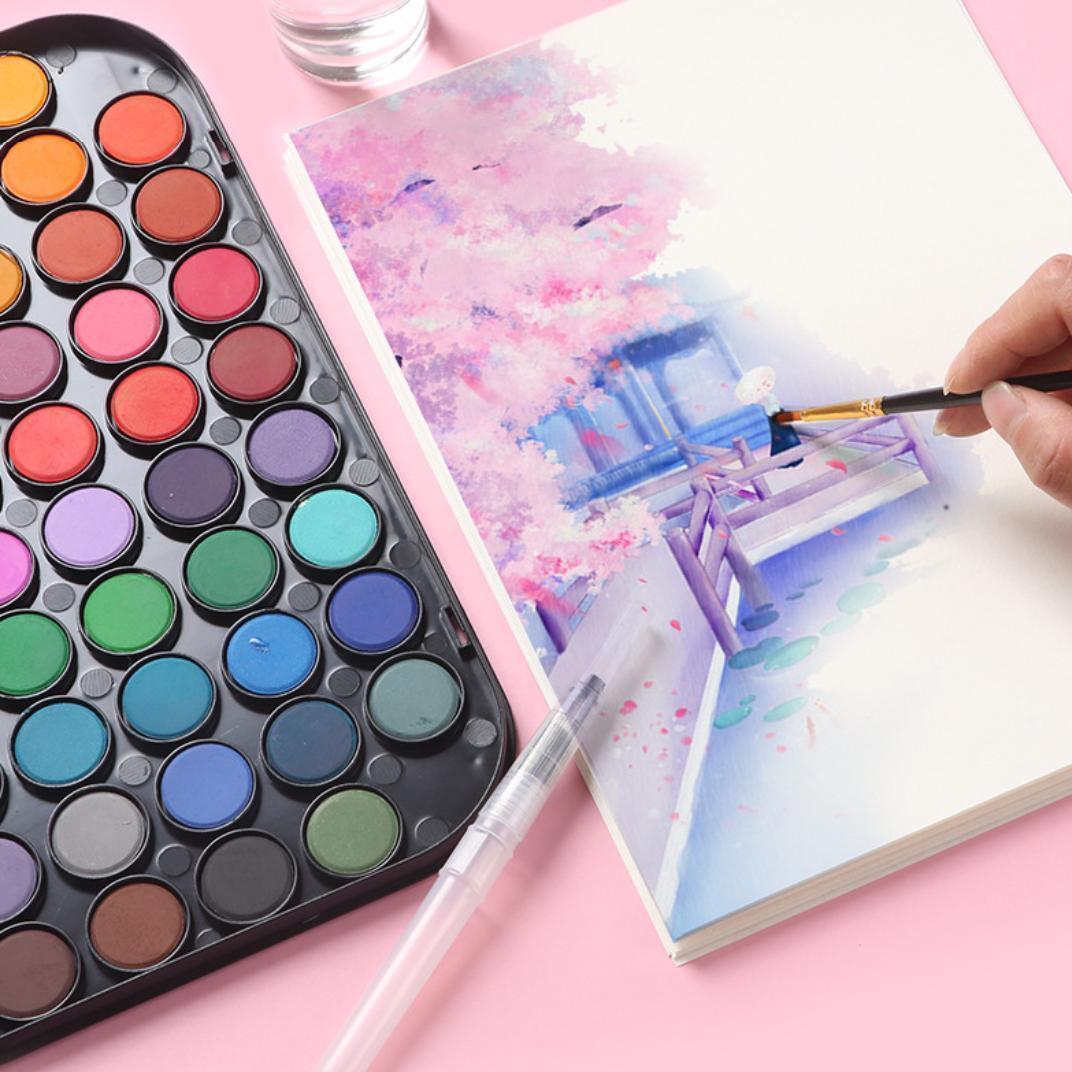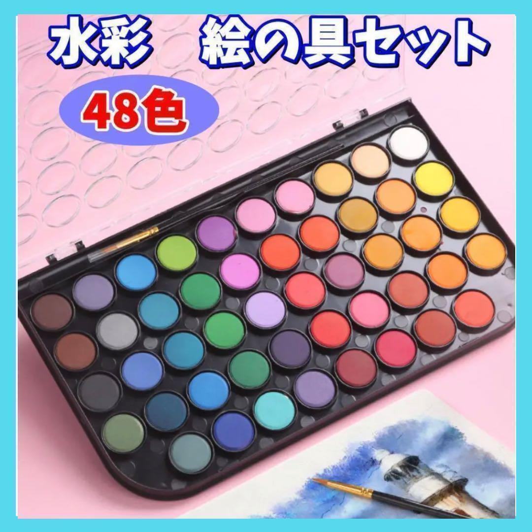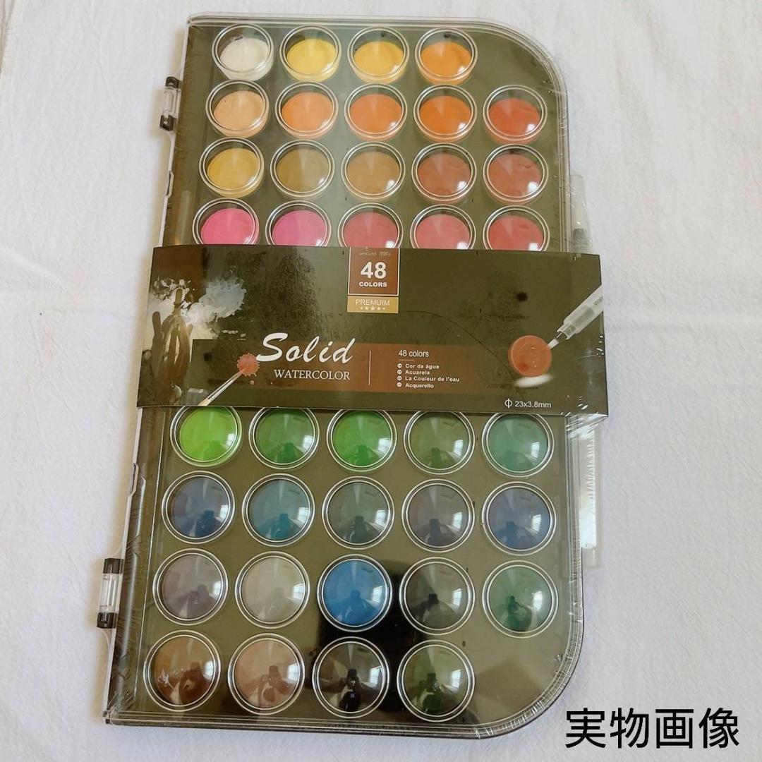 水彩画 固形絵具 イラスト 絵葉書 知育 アート 固形 48色 ペイント ブラシ 子供 初心者 が悪臭教材 学校教材 絵画 おうち時間 お絵かき 568
