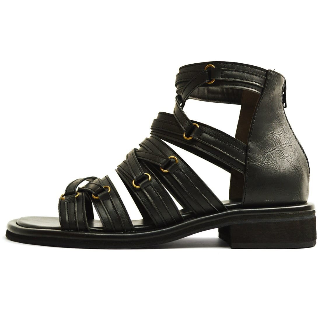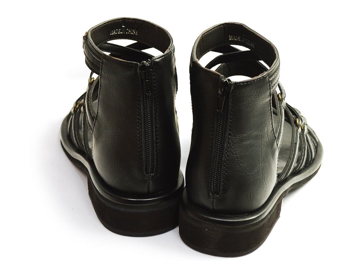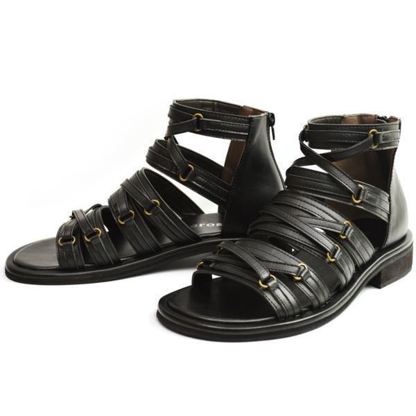 メンズ グラディエーター サンダル 後ろジッパー 着脱簡単 アースカラー PUレザー カジュアルシューズ ミドルカット 靴 ac160