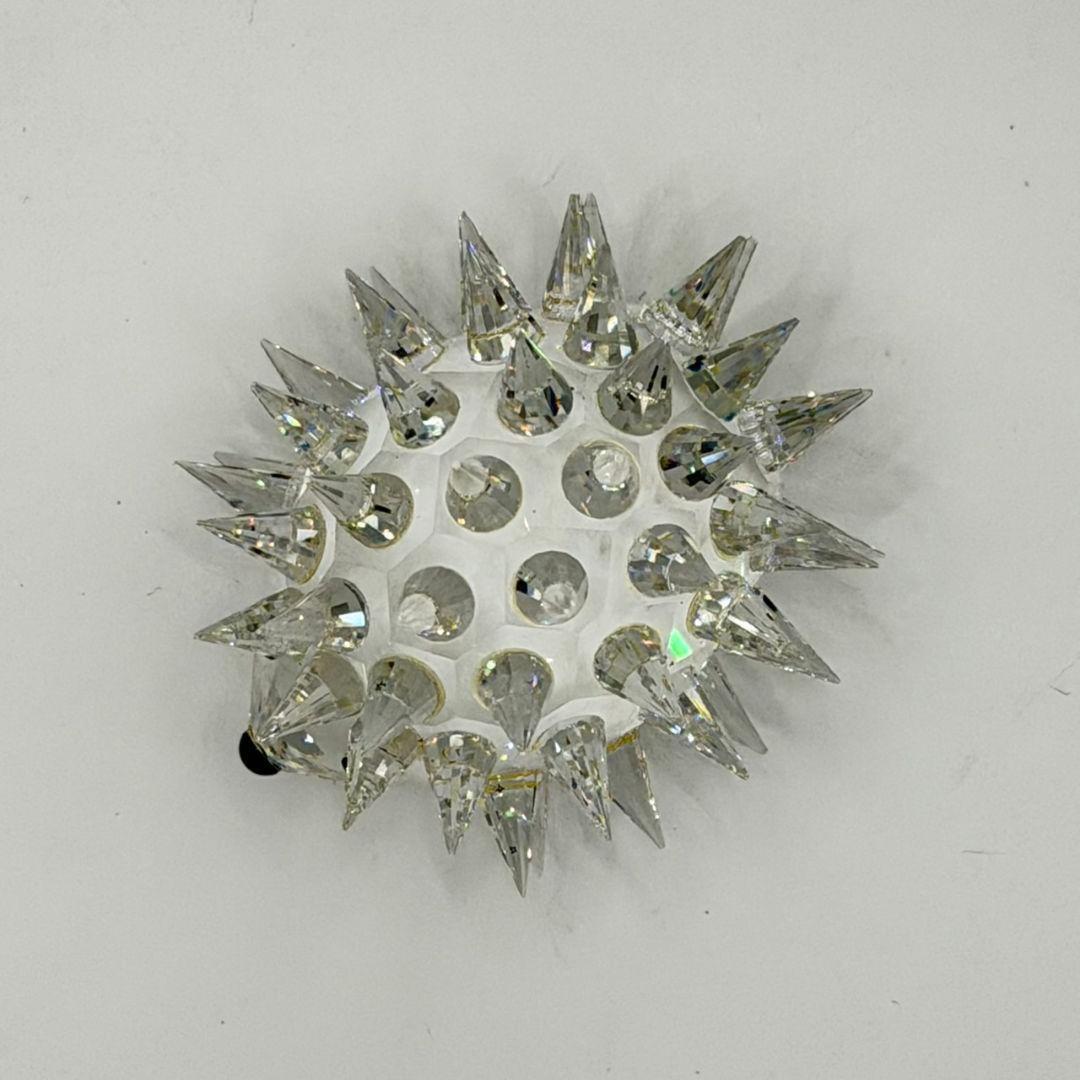 現状販売されているハリネズミは丸みのあるフォルムや滑らかな面構成で作成されていますが当品は全身がクリアクリスタルのトゲで構成されたクラシックな造形になってます。先端は若干水平にカットされていますがそれでも不意に触ると痛いです。