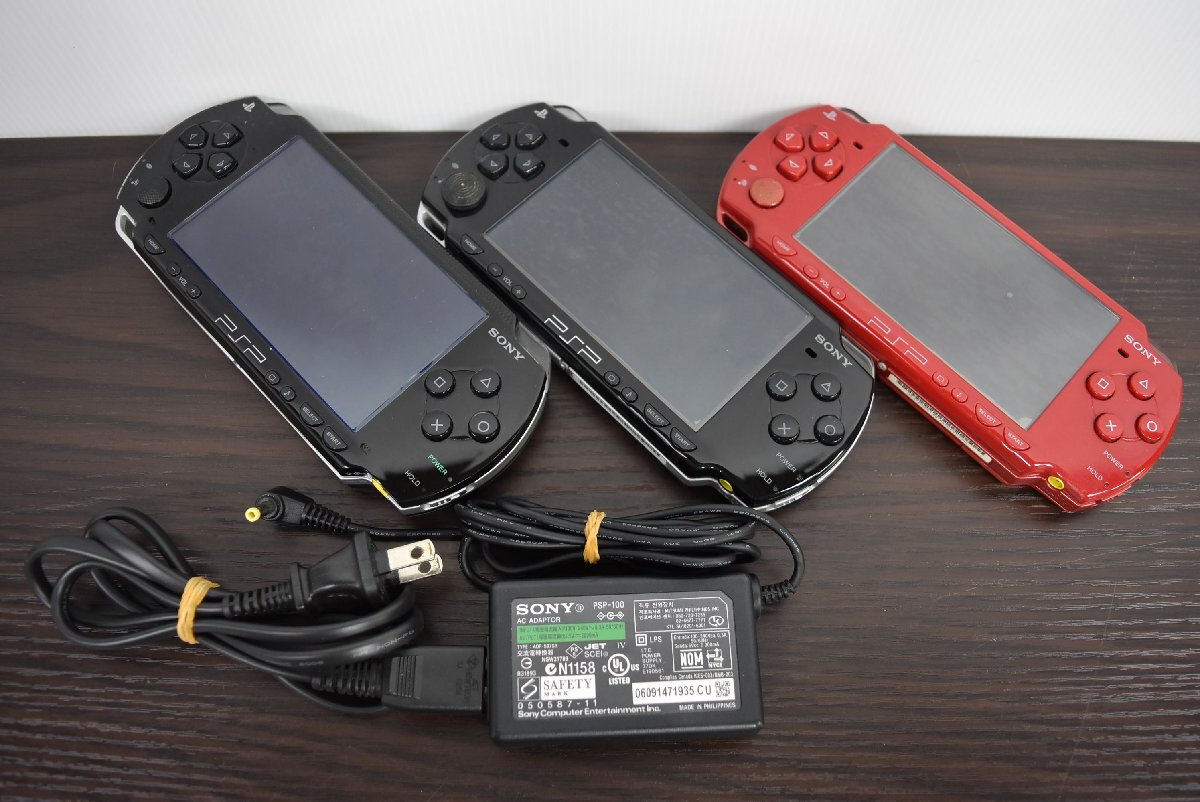 A-691 中古 ジャンク品 SONY ソニー PSP 3点 まとめ売り 赤 黒 PSP-1000 PSP-2000 プレステ ポータブルゲーム 本体 ソフト2点付き