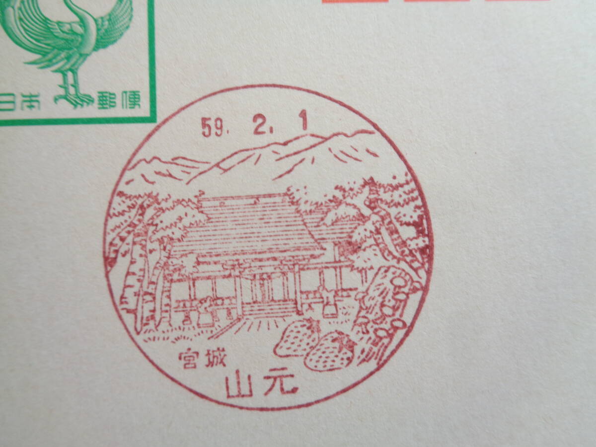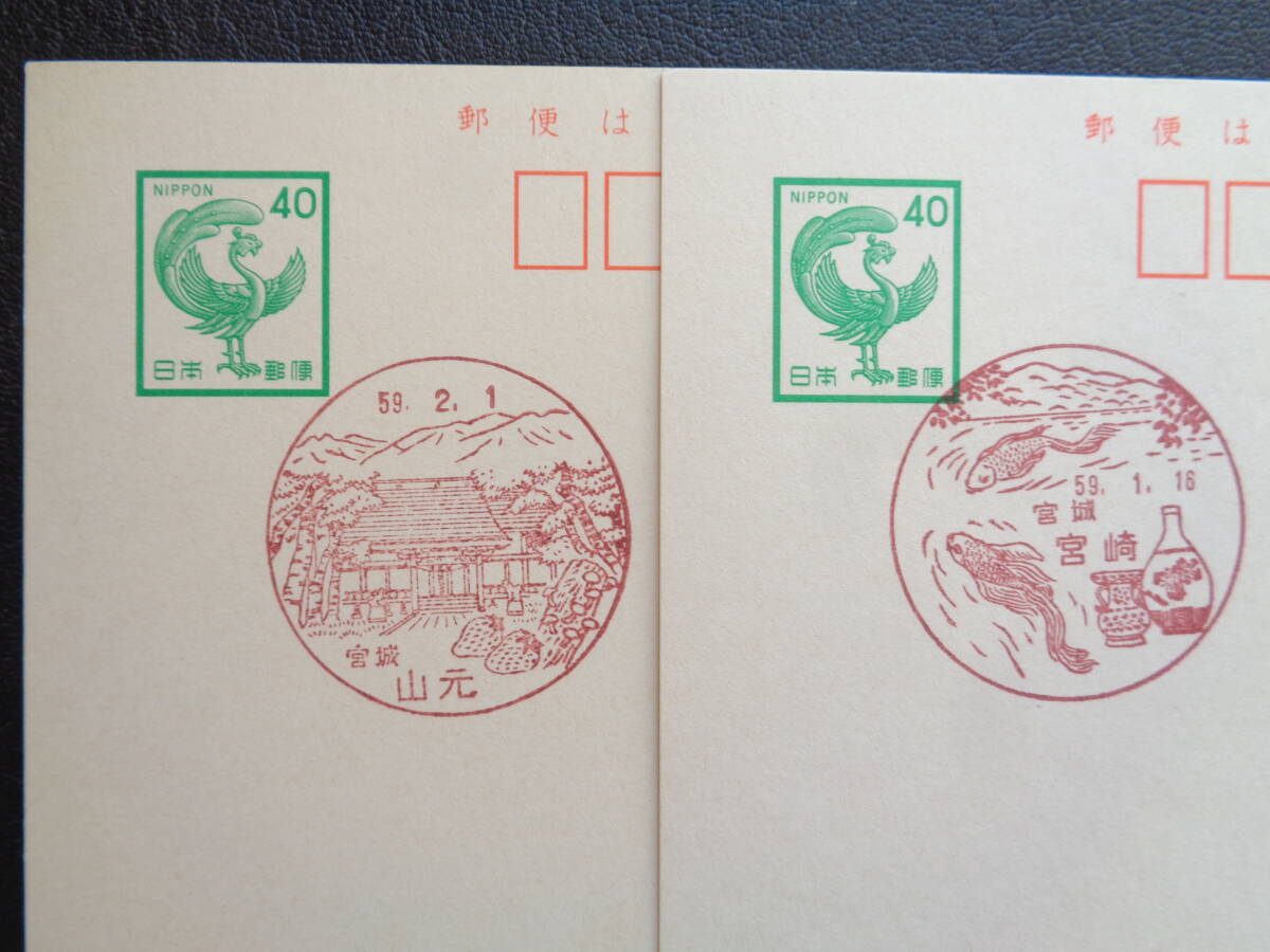 鳳凰はがき    初日印/風景印    宮城県2枚     宮崎/S59.1.16    山元/S59.2.1