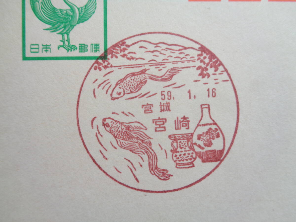 鳳凰はがき    初日印/風景印    宮城県2枚     宮崎/S59.1.16    山元/S59.2.1