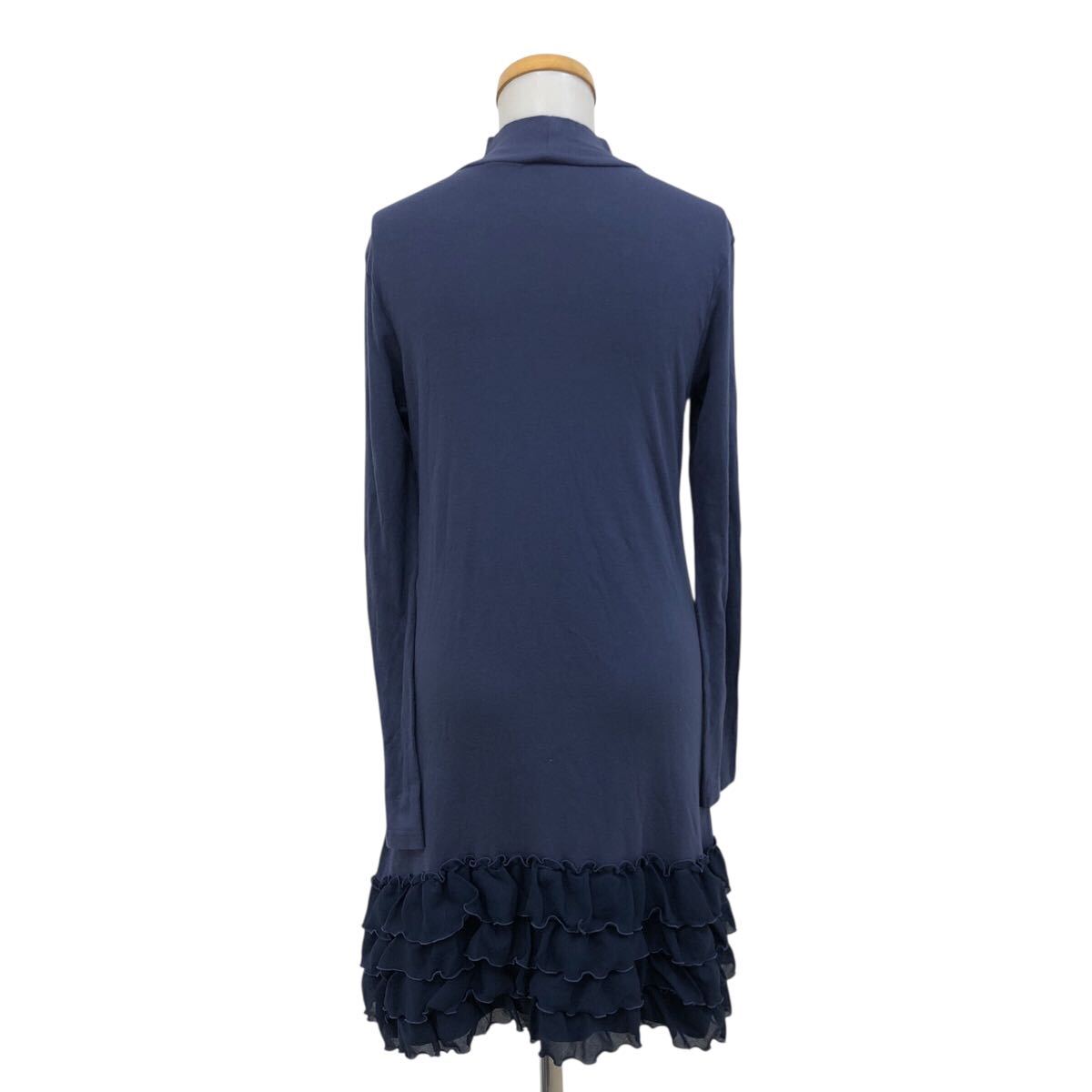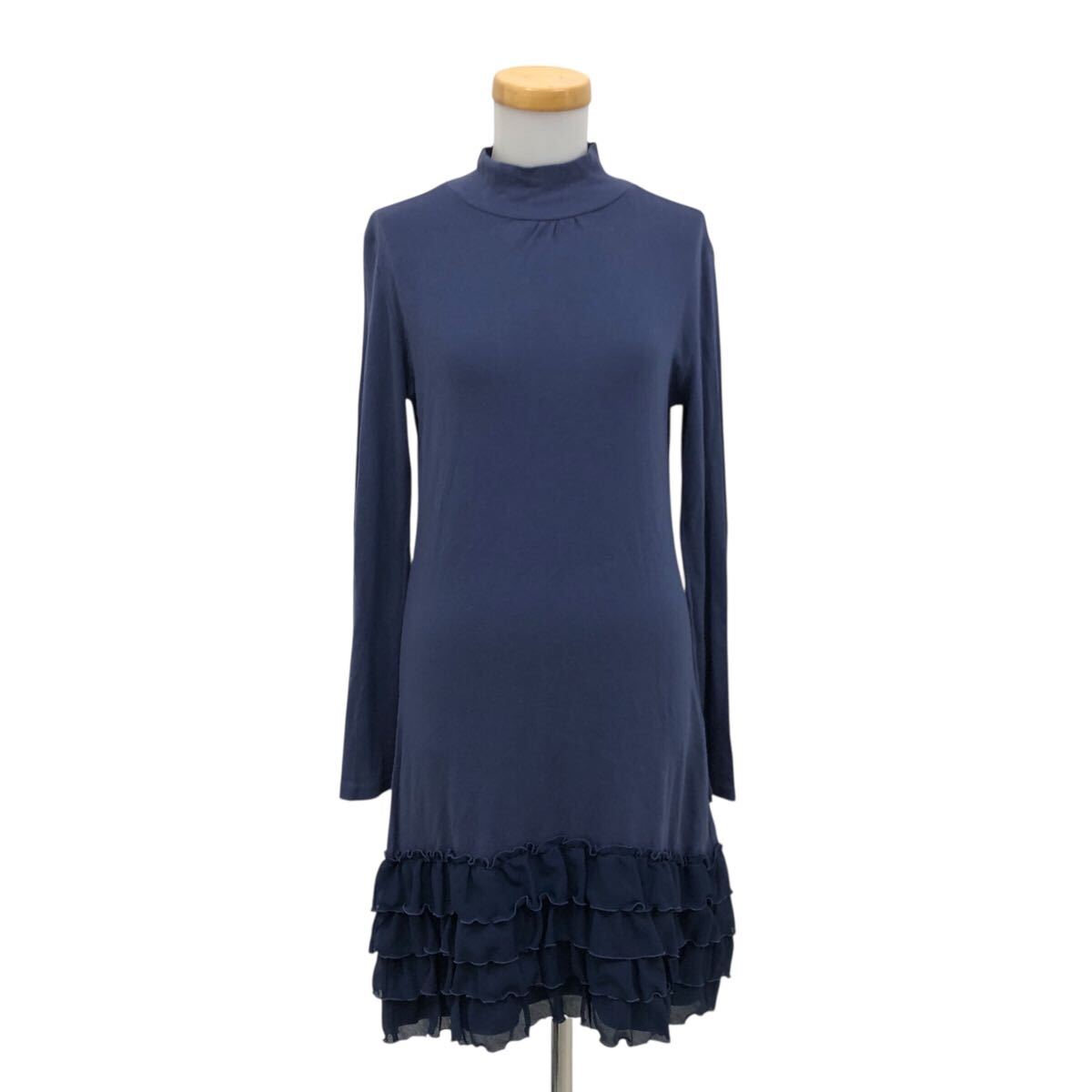 Nm341-62 Jocomomola ホコモモラ シビラ モックネック 長袖 裾フリル カットソー ワンピース ワンピ ネイビー 紺 レディース 40