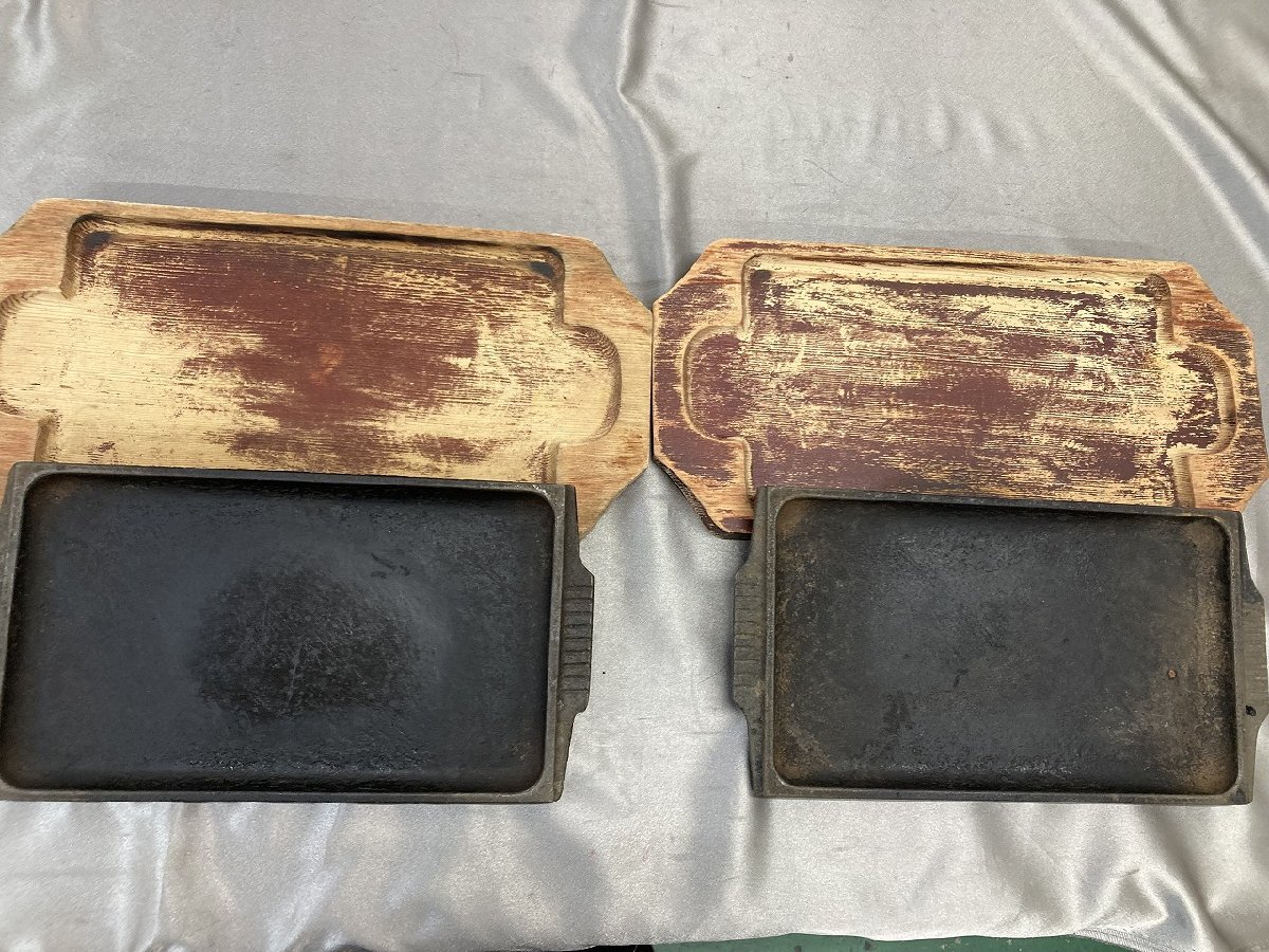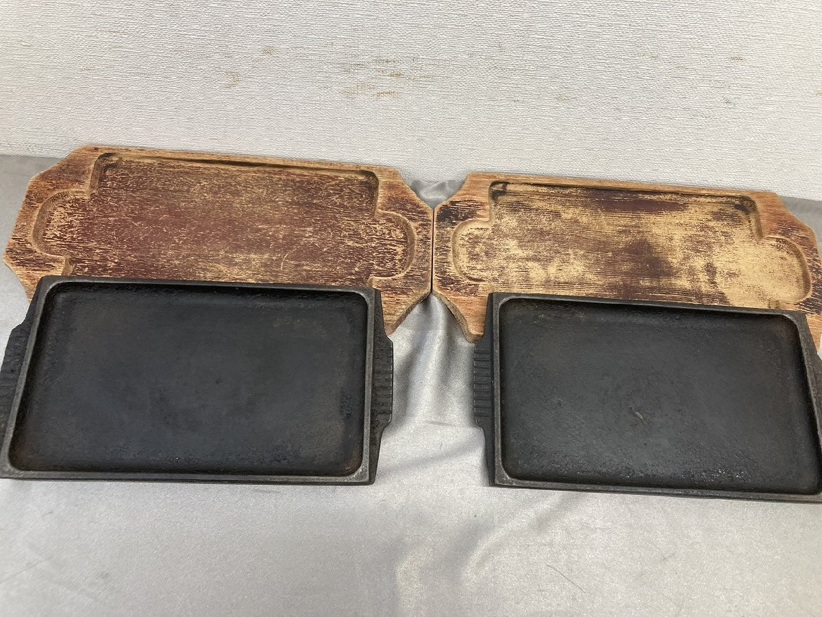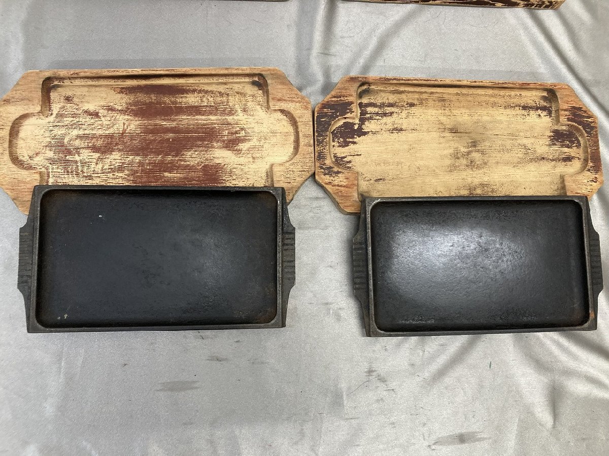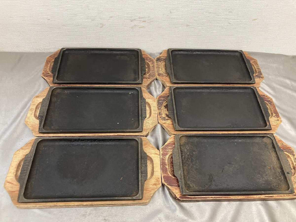 ★ L 食器 厨房用品 店舗用品 プレート ステーキプレート 鉄板 トキワ 28 木台 木製プレート付き 6点セット まとめ売り 中古品