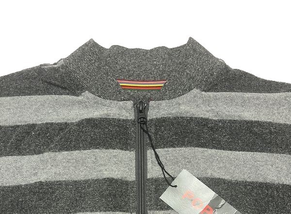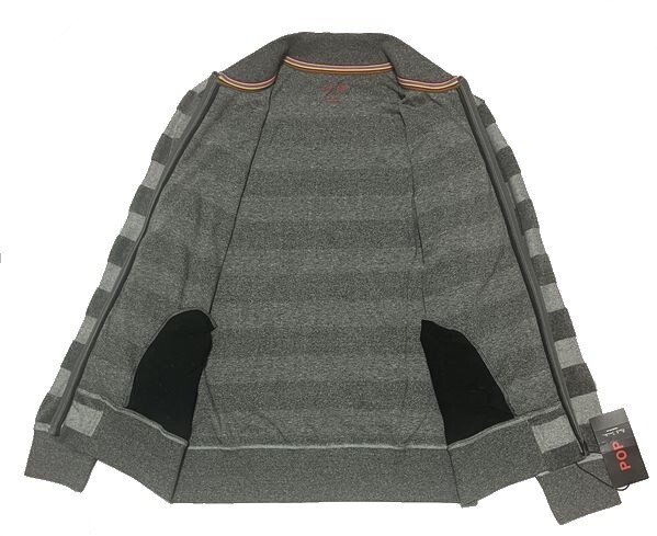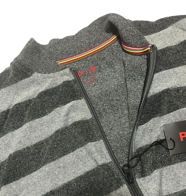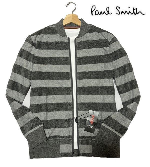 ◇Y5 新品 定価9,680円 Paul Smith ポールスミス ジップアップブルゾン 【 M 】チャコール杢 薄手 ボーダー柄 ニットジャカード LOUNGEWEAR