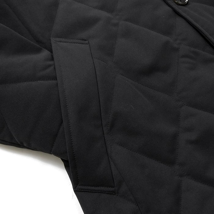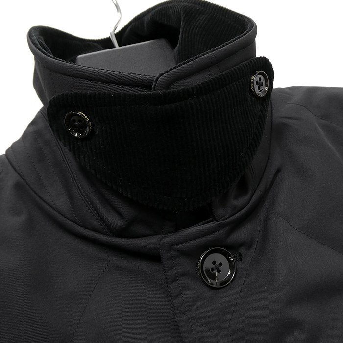 表地は光沢の少ないマットに抑えたツイル生地を使用し、オン・オフ問わず着用いただけます。 保温作用に優れたセラミックスが繊維に練りこまれおり、遠赤外線の効果であたたかさをキープできる高機能素材【光電子】を採用。 厚みを抑えた中綿素材でありながら暖かさを体感出来て、ジャケットやスーツの上からでもスッキリとした印象です。 デザインはシンプルなつくりになっており、襟部分・チンストラップのコーデュロイ素材がアクセントになっています。 【デザイン】 ・フロントは5つボタン ・ボタン式サイドベンツ |
