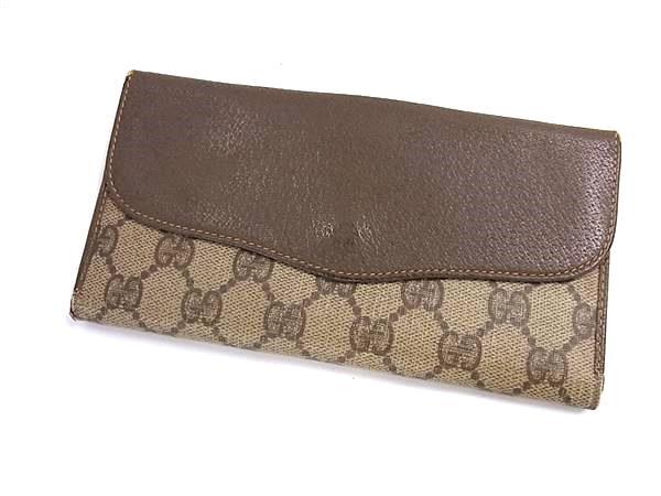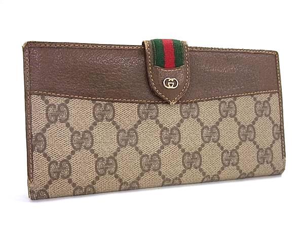 1円 GUCCI グッチ GG柄 インターロッキングG シェリーライン コーティングキャンバス 二つ折り 長財布 ウォレット ブラウン系 FT2878