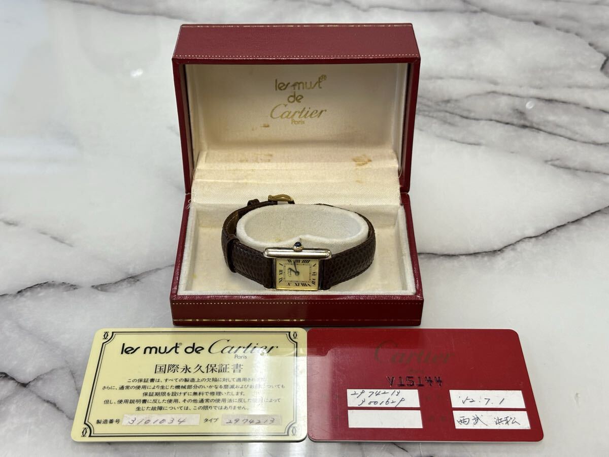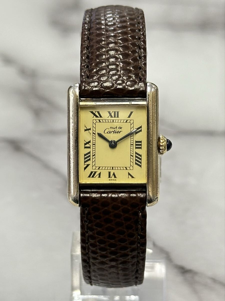 管理番号S393 稼動品 Cartier カルティエ マストタンク 腕時計 手巻き SV925 ギャランティカード付 保証書付 箱付 レディース 現状品